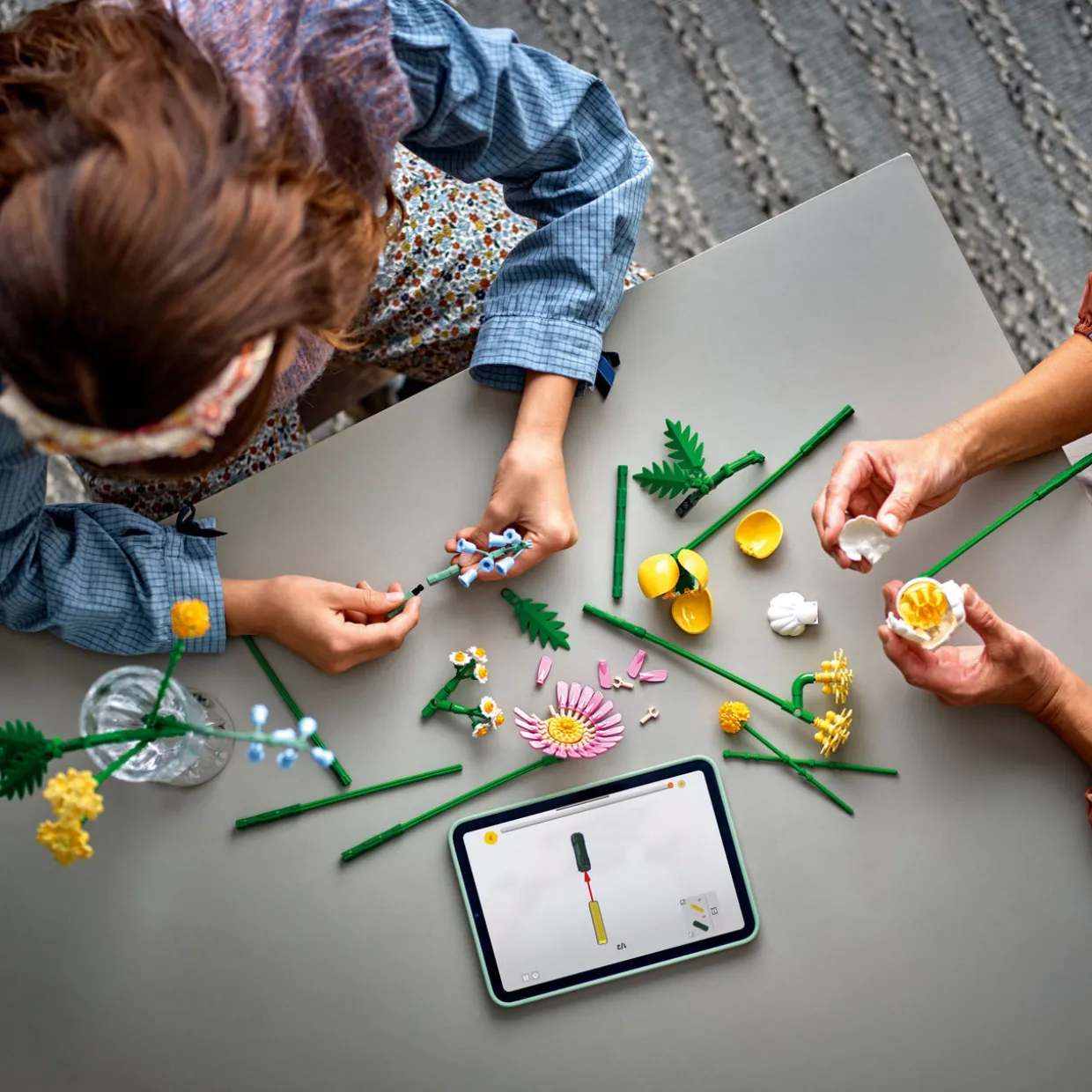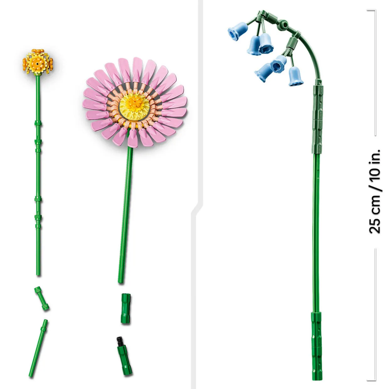 - 373 pieces total, authentic details, flower decor building set, adjustable stems, build-and-display bouquet, seven species of spring flowers