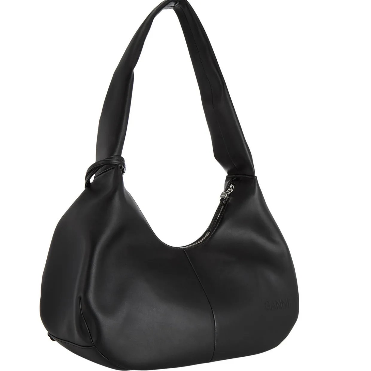 - Fixed shoulder strap, secure zip-fastening closure, attached butterfly logo tag with mirror, gold-tone hardware, tonal logo, slouchy shape, smooth finish