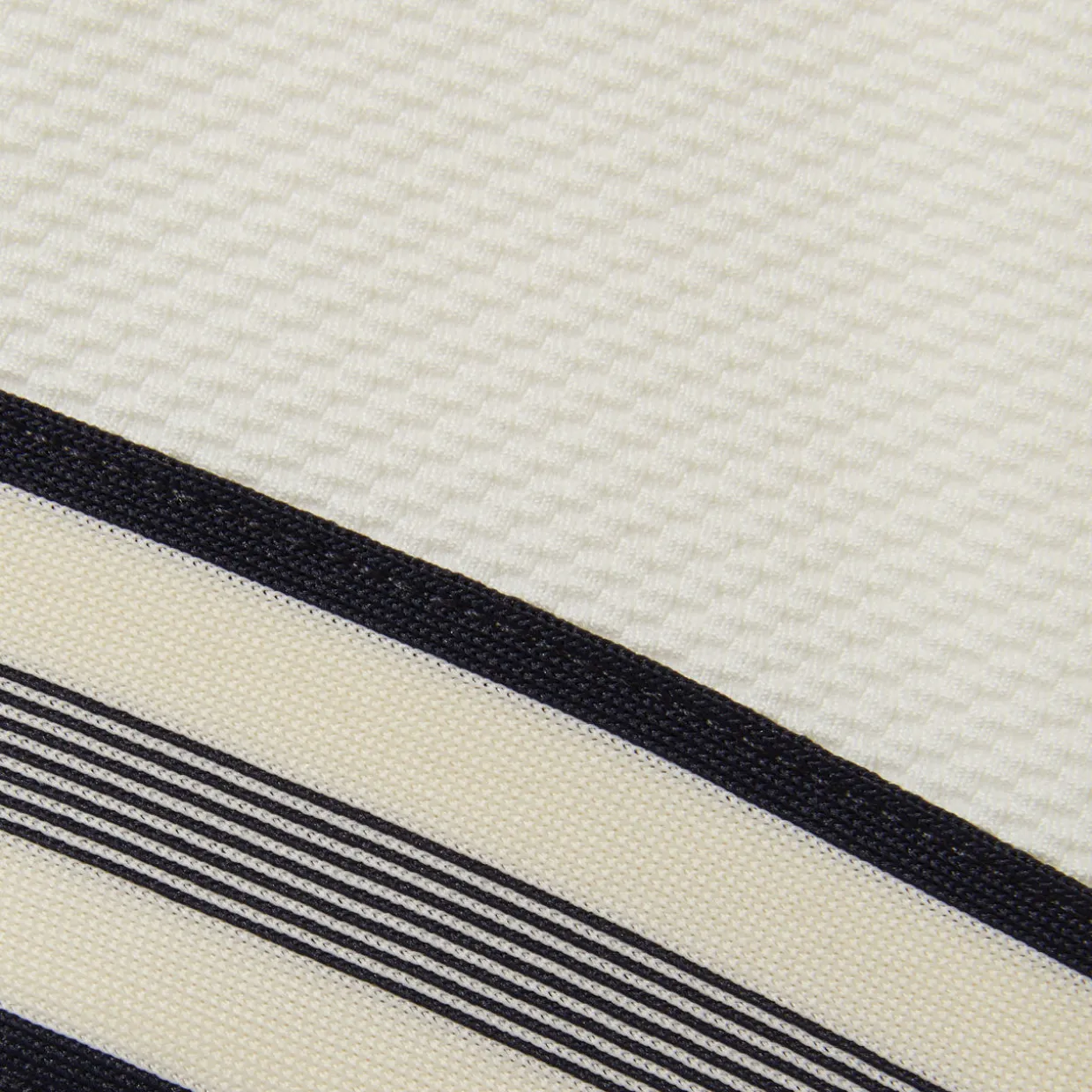 - Stretch-fused fabric, honeycomb textured finish, short sleeves, contrast striped trims, half-zip neckline, branded silver-tone zip pull tab, polo neckline