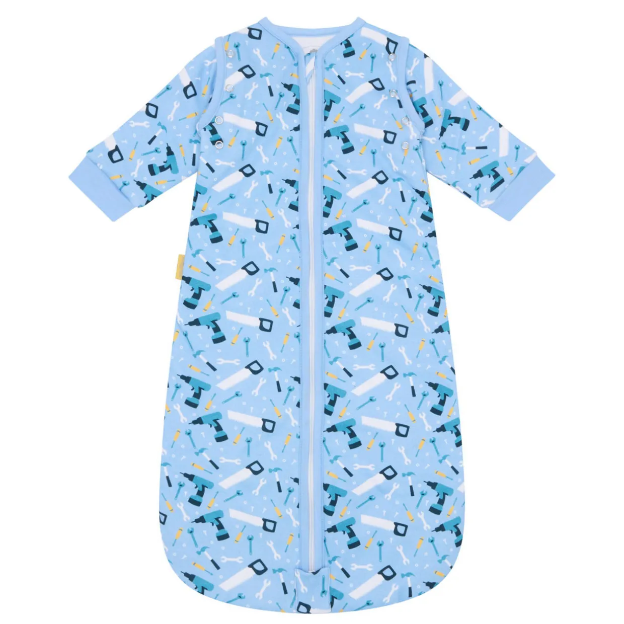 - 2.5 tog rating, long detachable sleeves, zip fastening, zipper garage, printed, round neck, ribbed cuffs, GOTS & Oekotex certified cotton and zip, hypoallergenic polyester fill