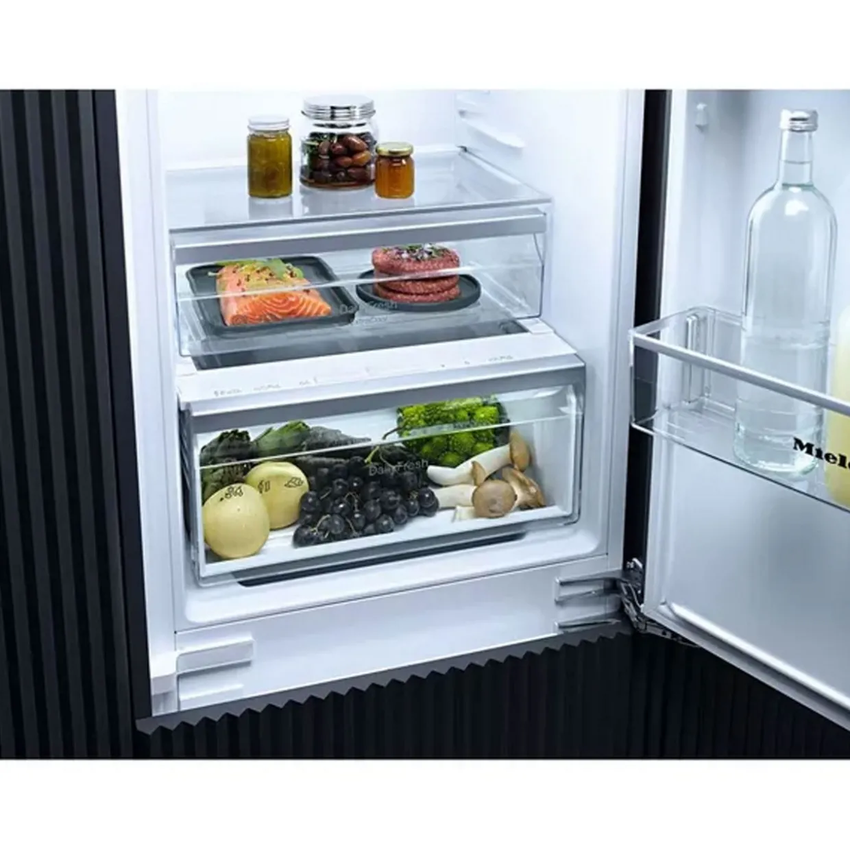 Maintenance-free and economical: efficient and durable LEDs ensure perfect illumination of the interior. With the NoFrost system you never have to defrost your Miele refrigeration appliance again. Circulation cooling ensures that cold, dry air is evenly distributed in the interior, preventing ice formation. This means no ice deposits on your frozen food, and allows drawers to be opened and closed easily without layers of ice interfering with them. NoFrost offers maximum convenience for freezing food and saves the hassle of defrosting – forever.