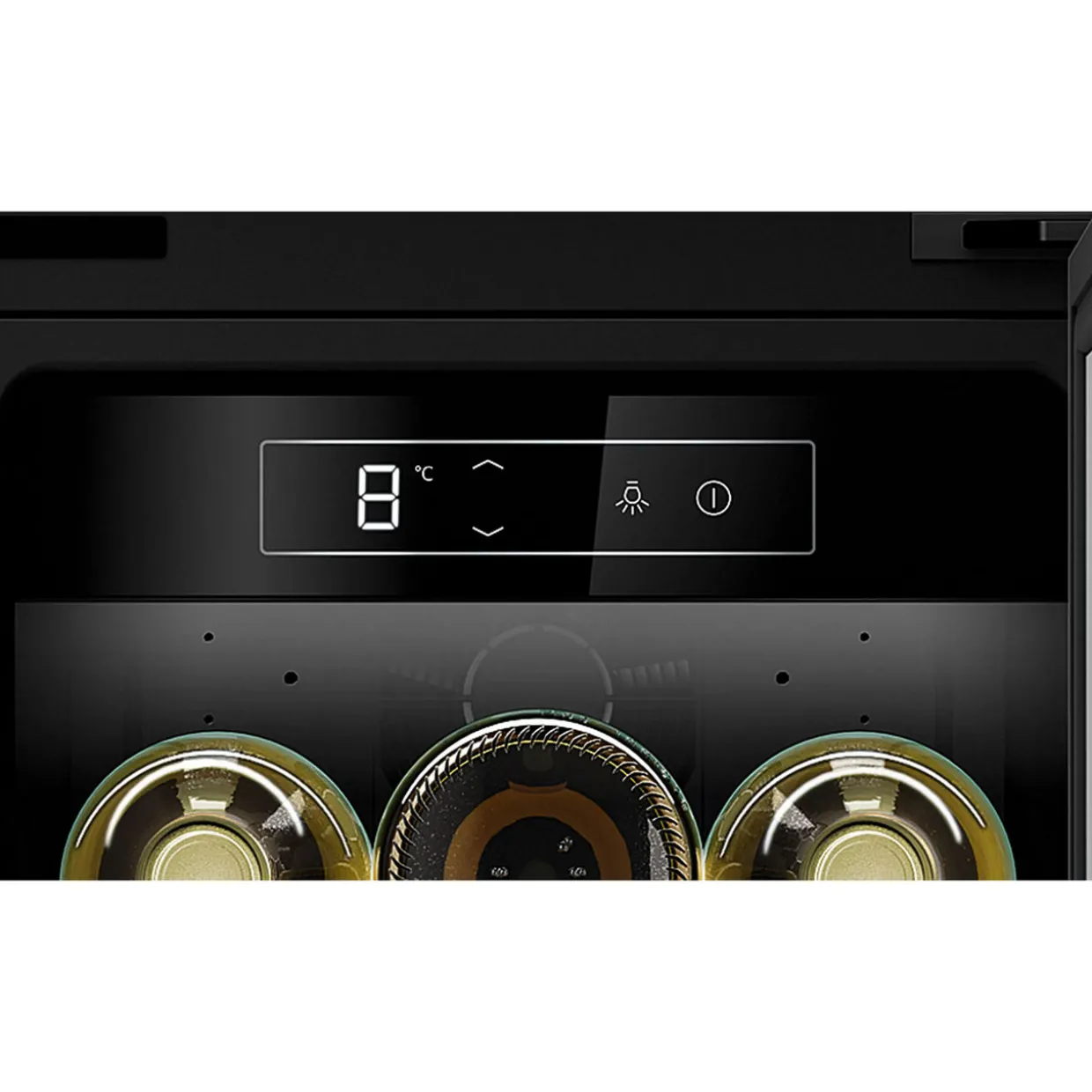 - Bright LED light illuminates the cabinet