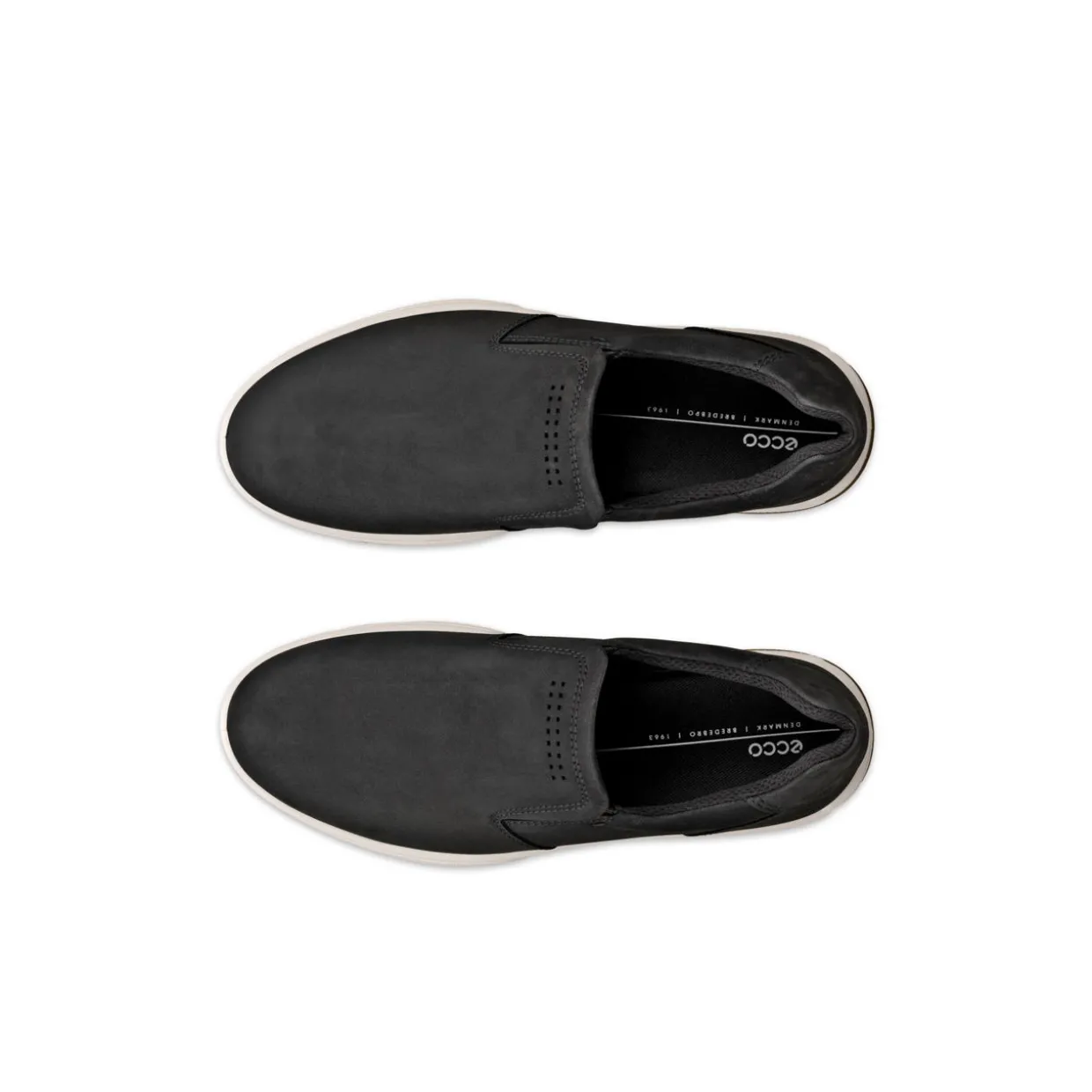 - Slip-on design, low cut shoe, Ecco leather construction, slip-on style, easy off sole edge below heel, tactical placed ventilation, Ecco FLUIDFORM™ for soft flexible and fluid movement, naturally supportive anatomical fit, rubber outsole for grip