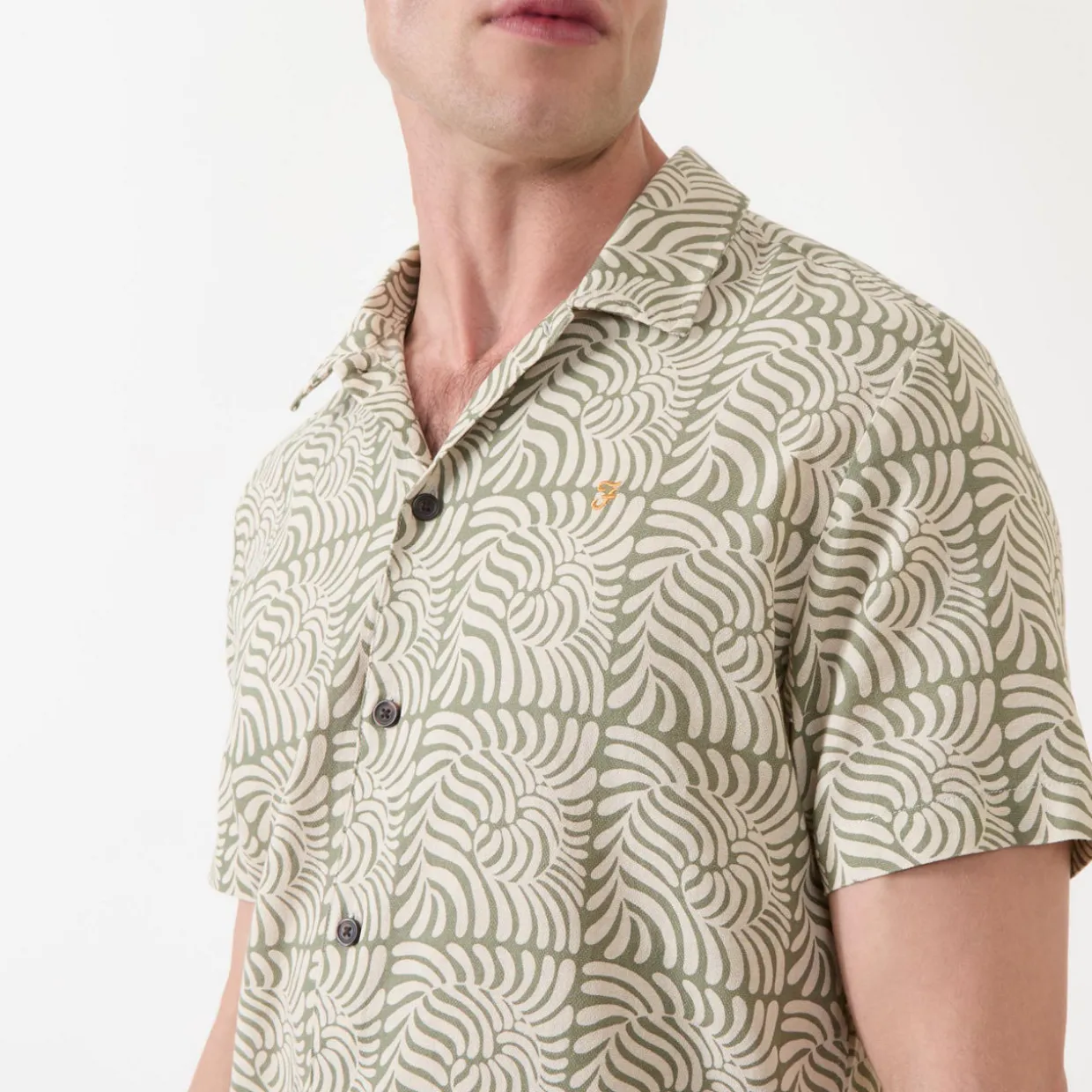 - Point collar, short sleeves, front button fastening, straight hem, logo detail, printed design
