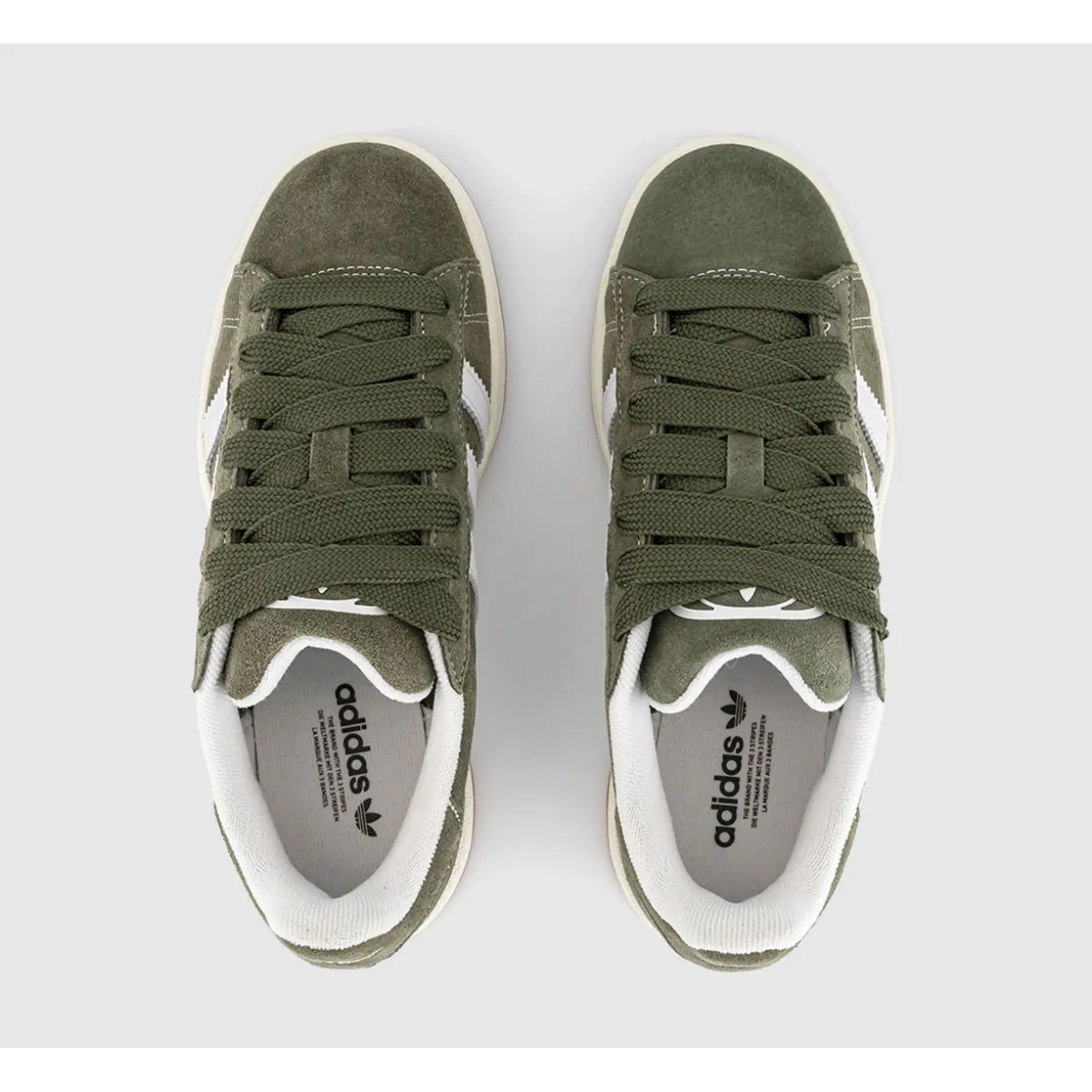 - Round toe, low-top, lace-up fastening, signature three stripe detail, branding details, logo badge, thick sole, suede upper