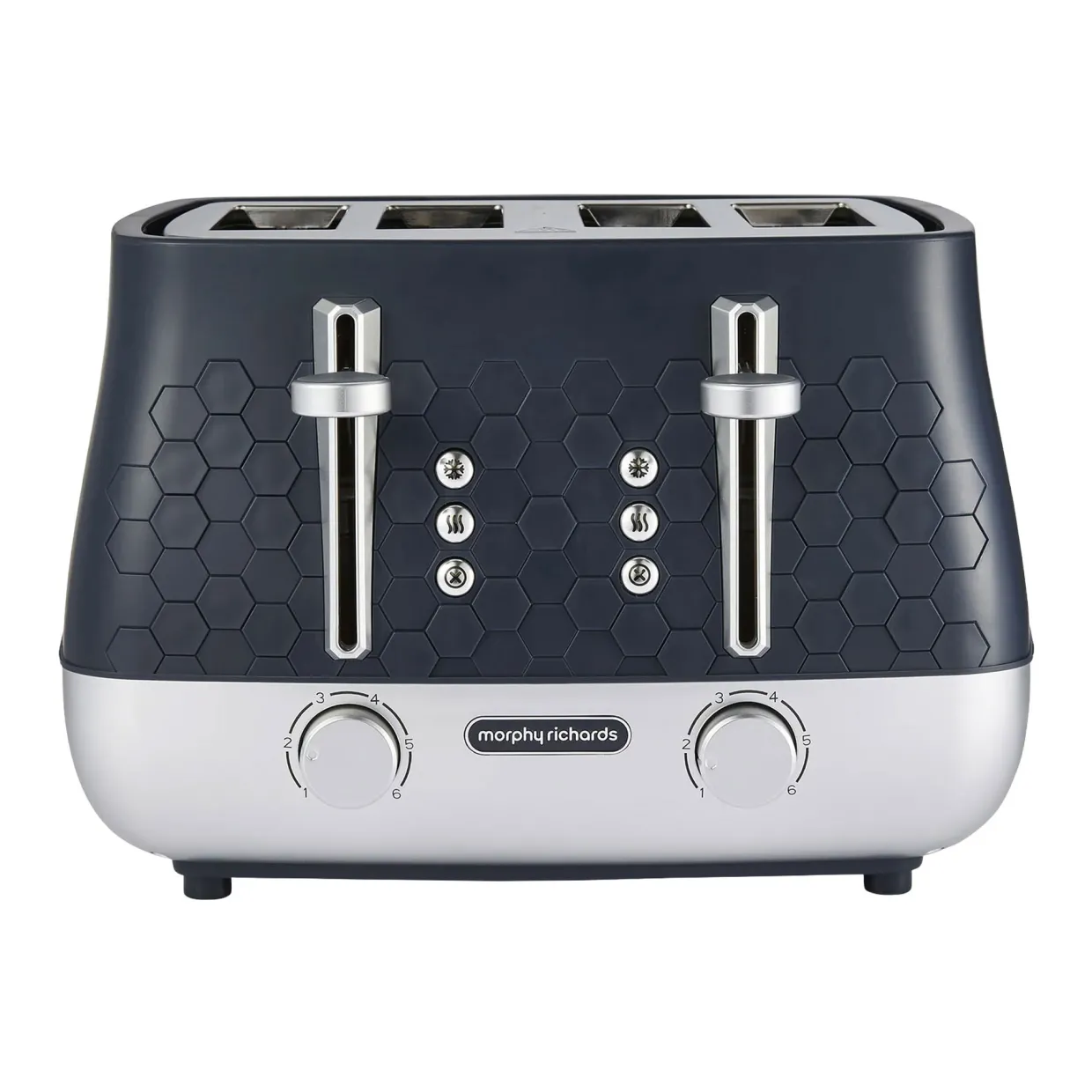 If you’re looking for a new toaster, look no further than the Morphy Richards Cassini 4-Slice Toaster! The Cassini range features a distinctive hexagonal design across the kettle, toaster, and microwave, creating a cohesive and modern aesthetic for your kitchen. Combining premium quality with a modern design, our Cassini toaster is crafted with multiple features to ensure a user-friendly design, this high end electric toaster will certainly make busy morning breakfast routines much easier. For instance, the high lift function allows easy and safe removal of smaller slices while the variable browning control lets you customise each slice to your ideal crispness. Not to mention, effortlessly keep your worktops clean with the convenient removable crumb tray while the illuminated control buttons offer a sleek, modern touch.