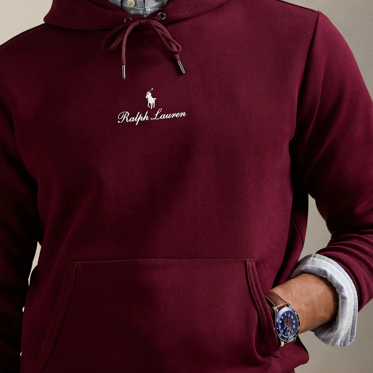 - Drawstring hood, long sleeves with ribbed cuffs, kangaroo pocket, ribbed hem, signature pony and “ralph lauren” script embroidered at the centre front