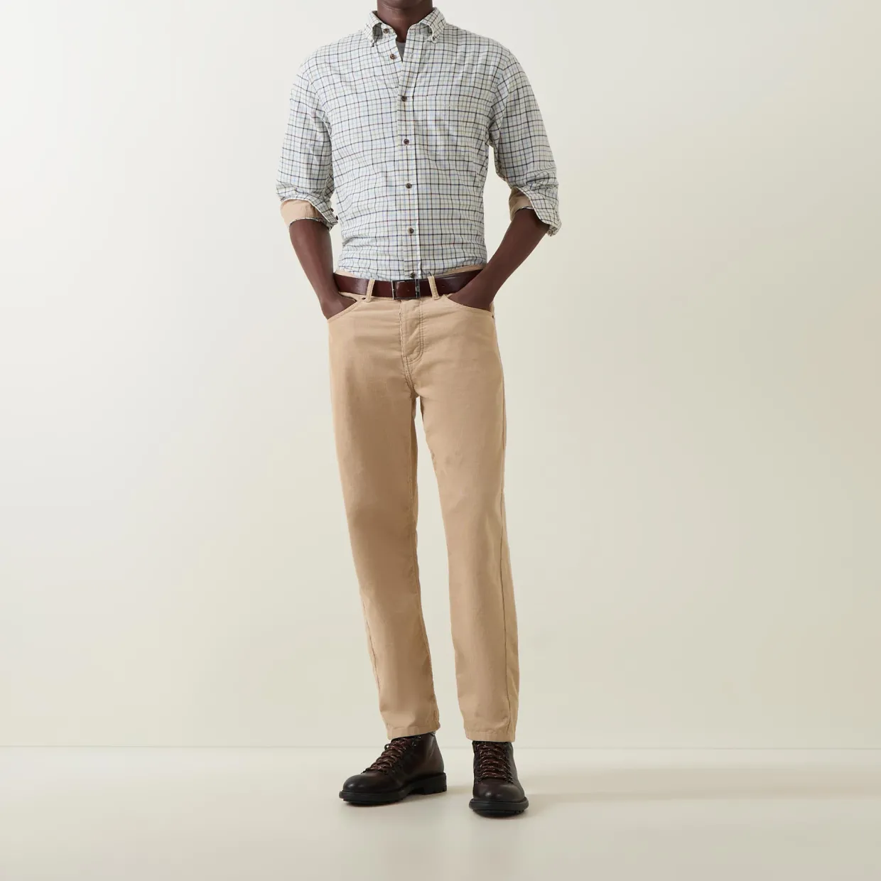 - Button-down collar, long sleeves, single-cuff, curved hemline, check pattern, logo details, button fastening, chest patch pocket, box pleat and locker loop at rear