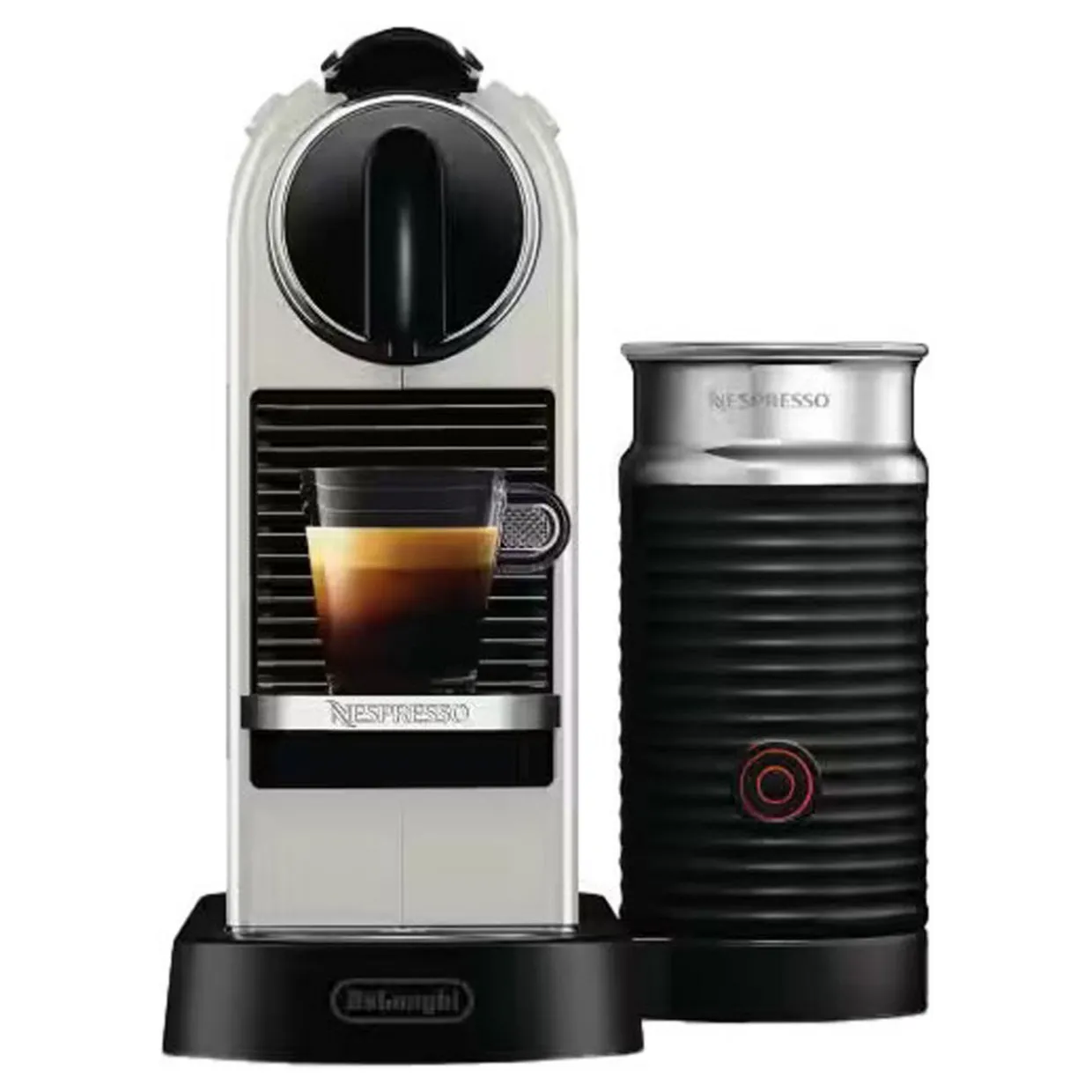 - Compact designfits every spacein your kitchen; Can house 2 cup sizes one for Espresso and one for taller cups