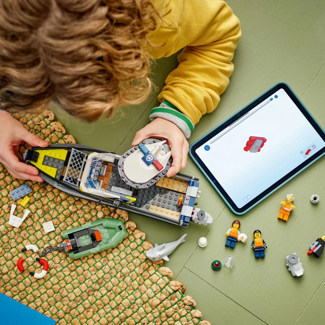 - 264 pieces, playset, build-and-float police boat and power dinghy, two police officer minifigures