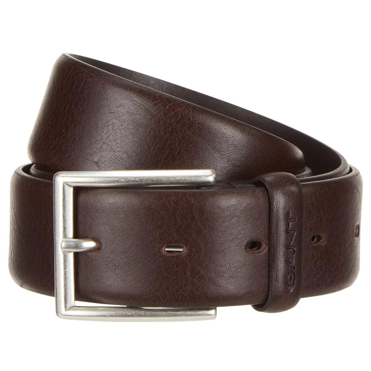 - Grained finish, adjustable fit, silver-tone hardware, squared tip, branded belt keeper loop, square buckle fastening