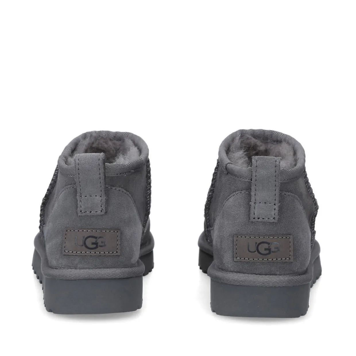 - Flat sole, shearling lined, flexible sole, pull-on style, round toe, branded