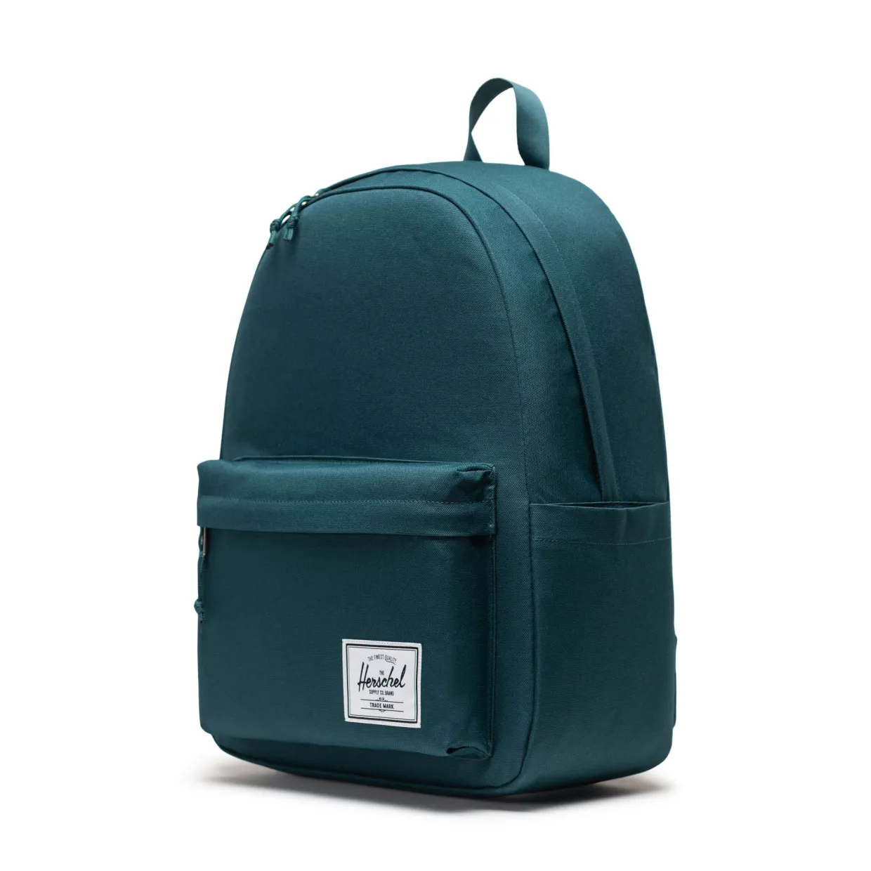 - Tonal stripe liner, zippered closure, Prusik cord pulls, adjustable padded shoulder straps, water bottle pocket, front pocket, brand logo badge