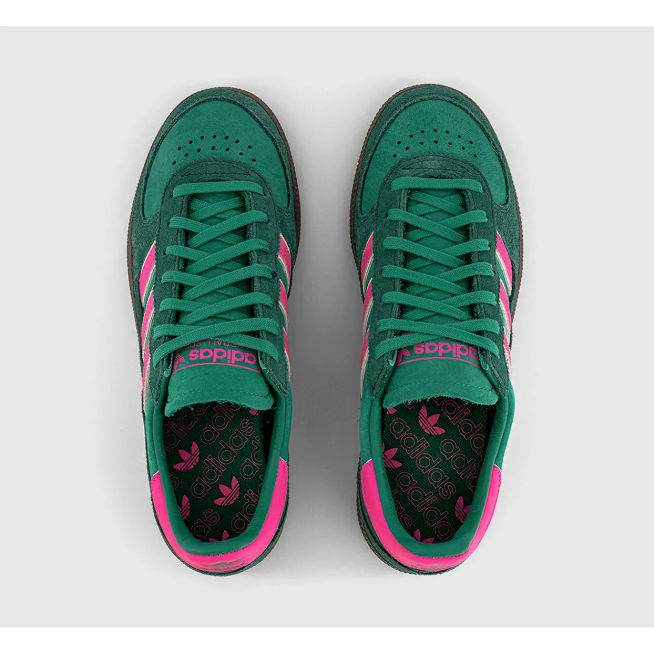 - Low top, lace-up fastening, signature three stripe detailing, round toe, letter logo, contrast heel counter, suede finish