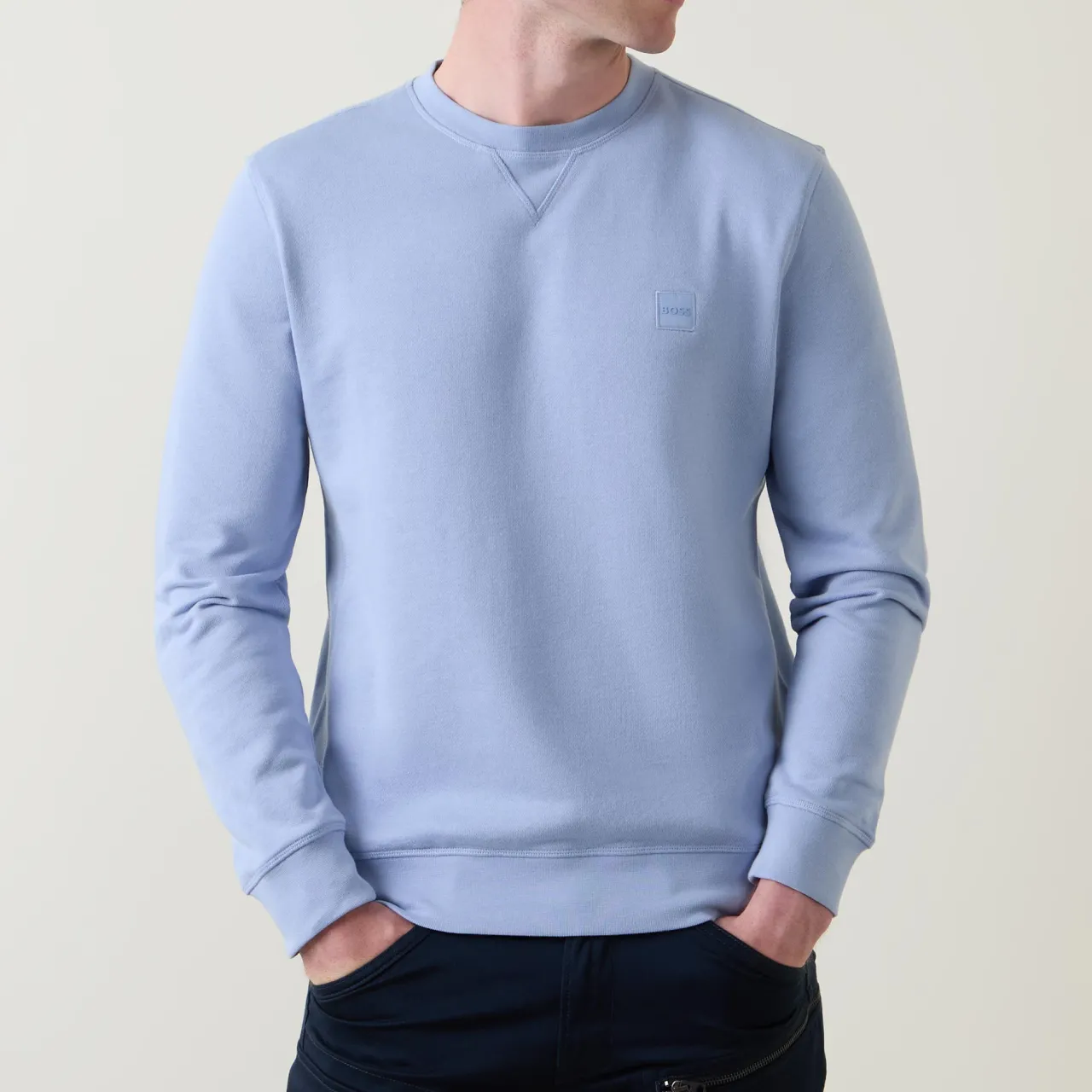 - V-stitch detail, crew neckline, long sleeves, straight hemline, ribbed trims