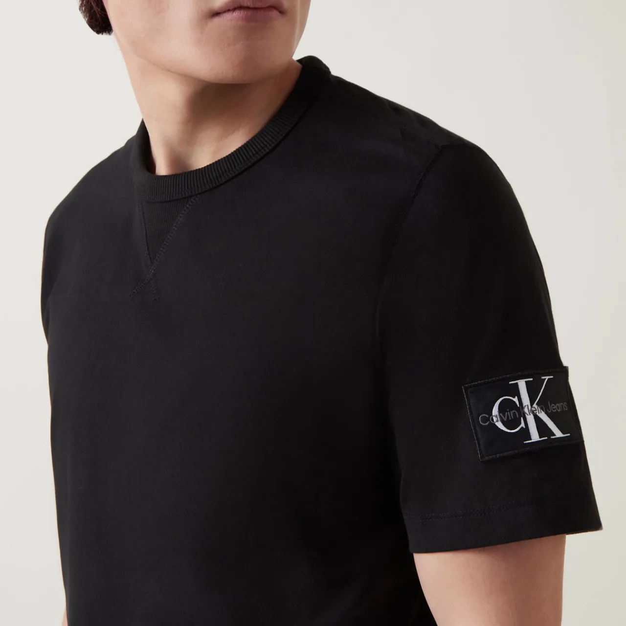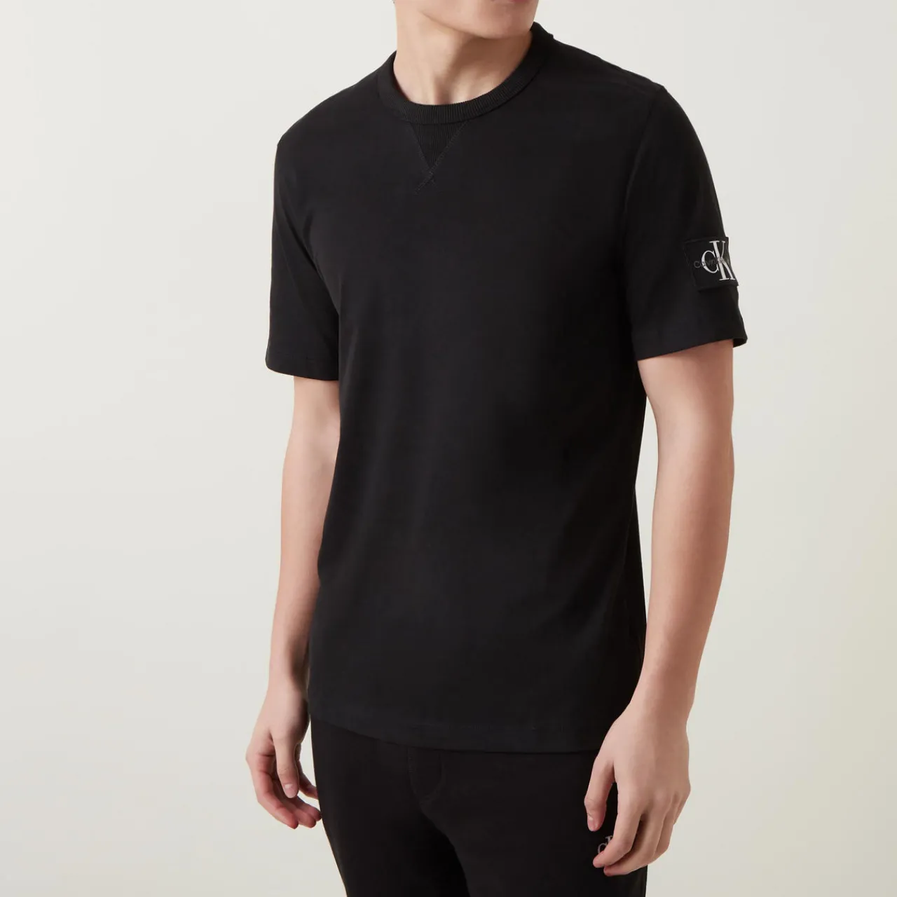 - Logo badge, round neck, short sleeves