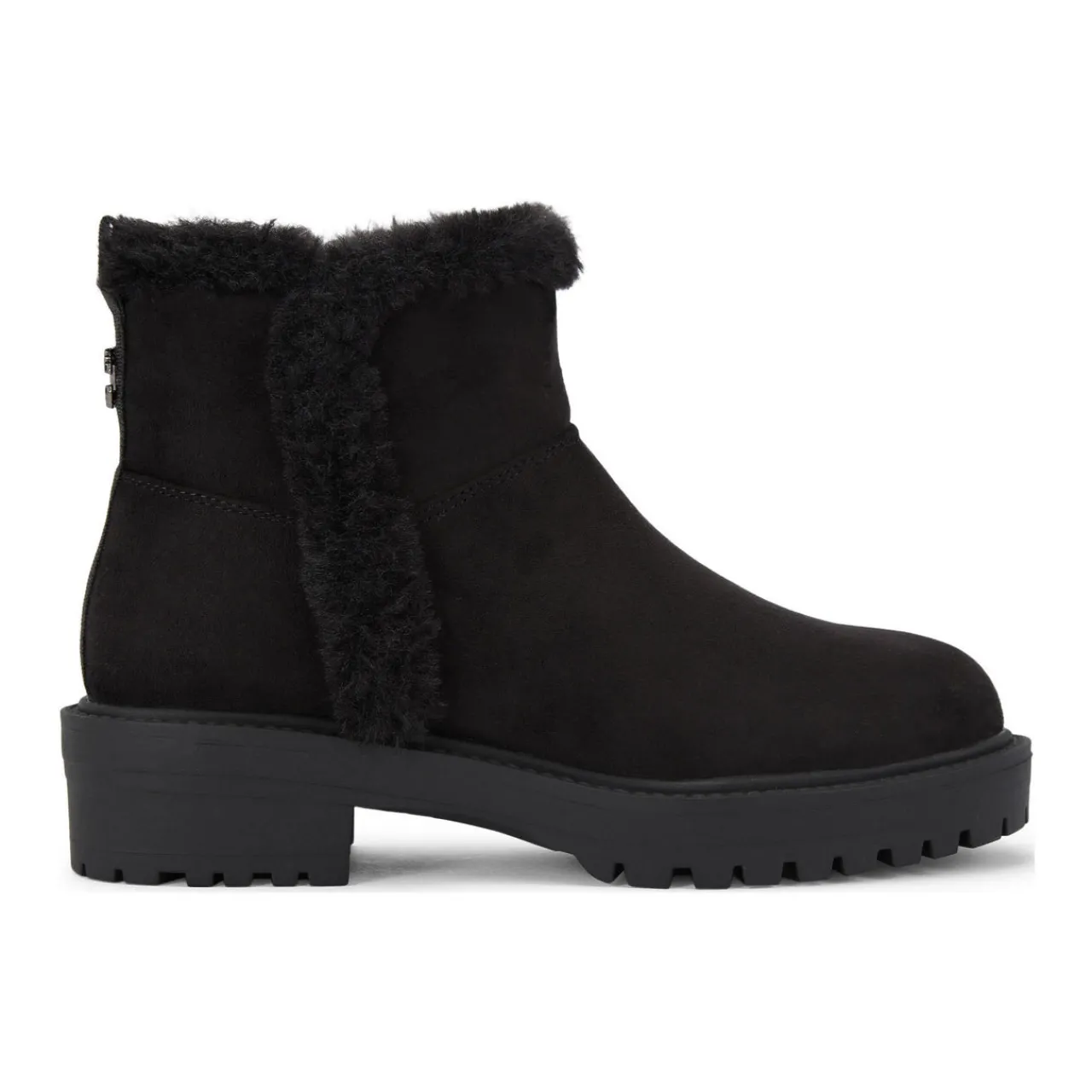 - Microsuede upper, borg lining, Icon C heel stud, side zip fastening, cleated sole, rounded toe, heel pull tab