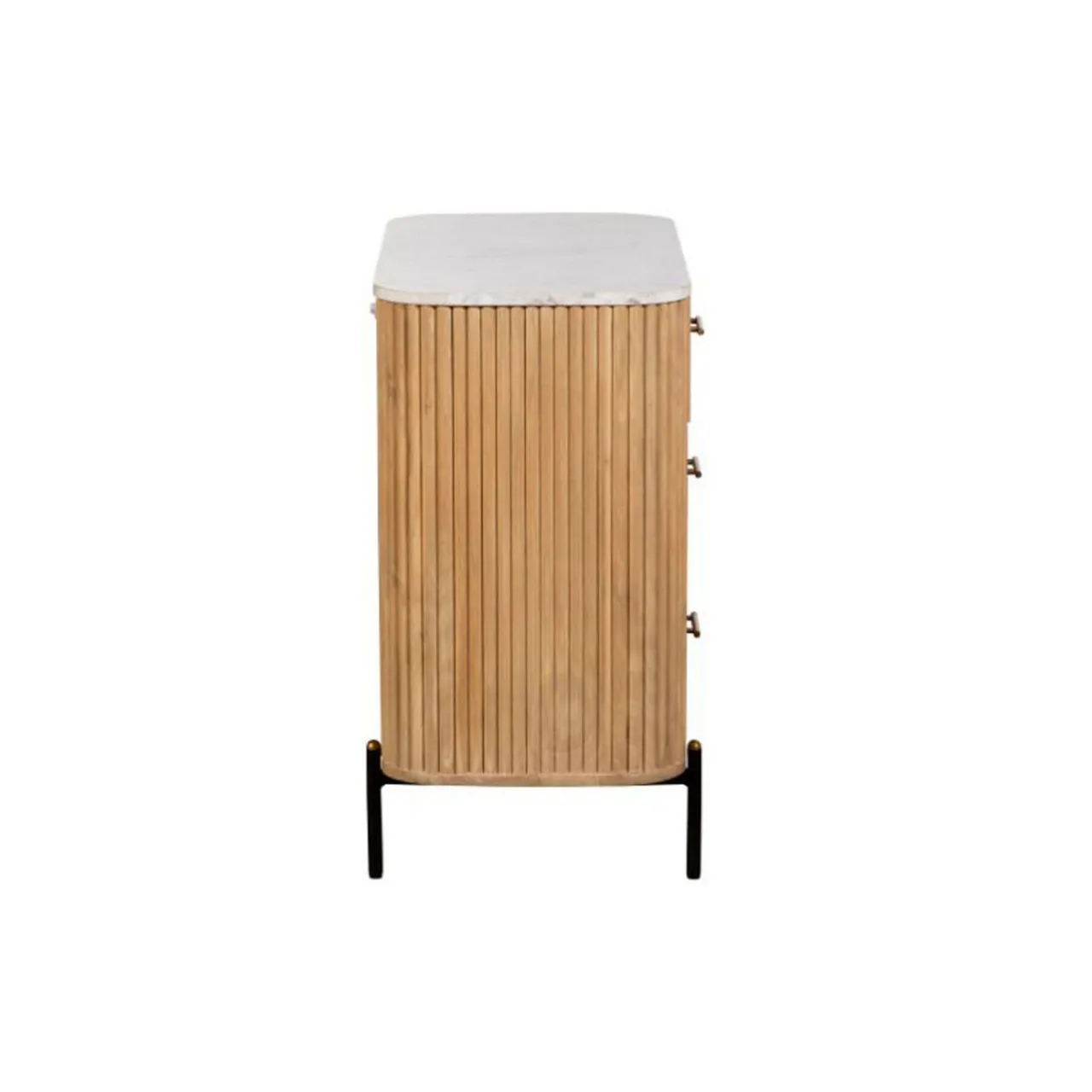 Upgrade your bedroom decor with the Lille 3-Drawer Chest of Drawers, featuring a luxurious marble top. Immerse yourself in the perfect blend of sophistication and functionality. The smooth marble surface adds a touch of opulence, making it an ideal spot for decorative items. With three spacious drawers, this chest offers ample storage, ensuring a clutter-free and organized bedroom.