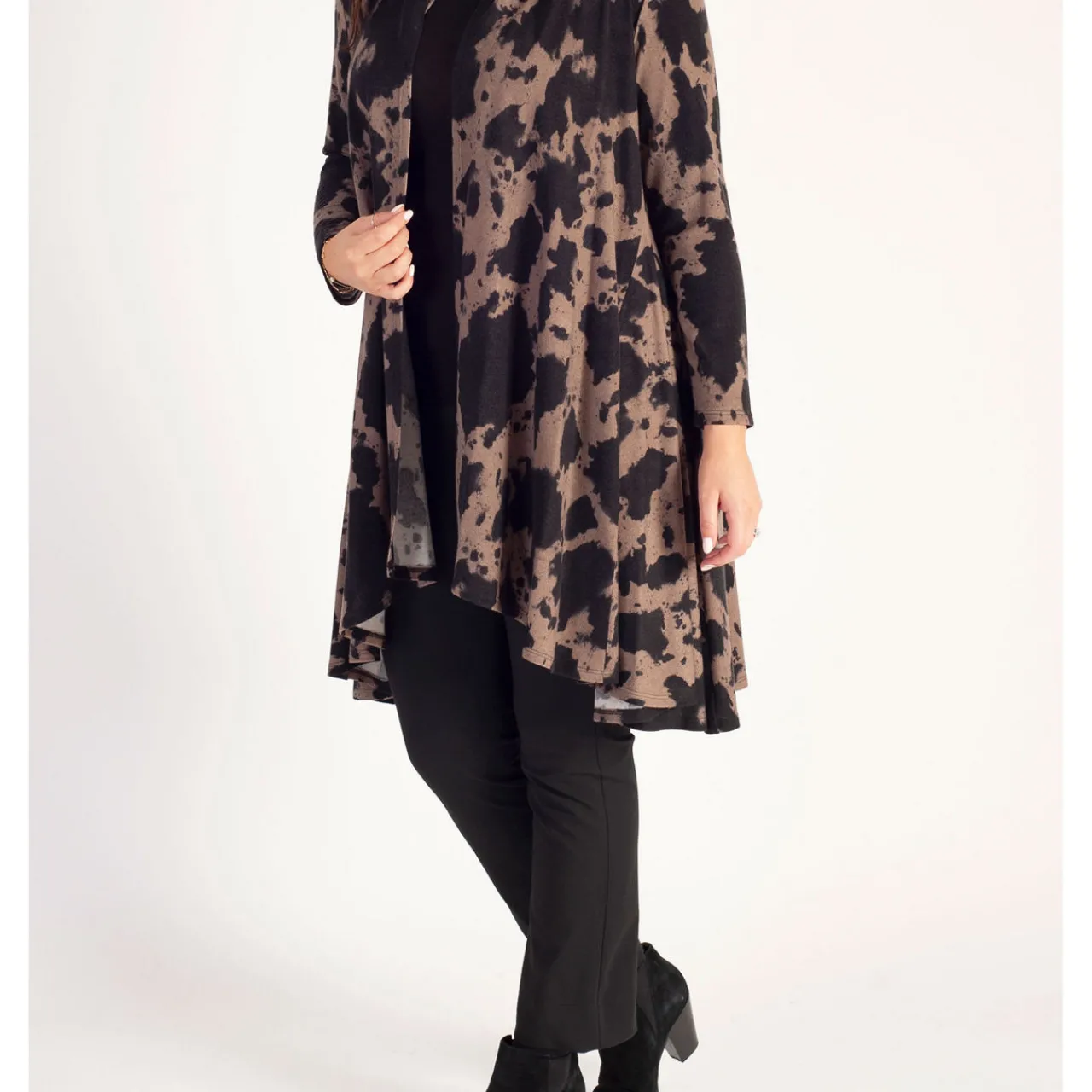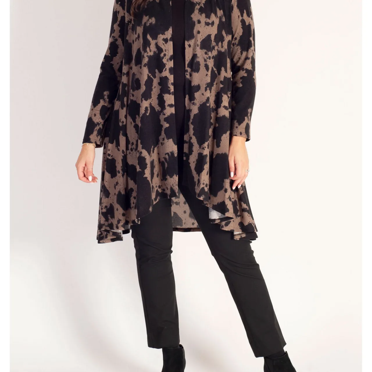 - Open neckline, jersey fabric, abstract pattern, long sleeves