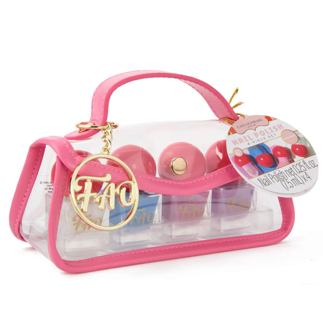 - This set includes 4x nail polishes, 1x purse