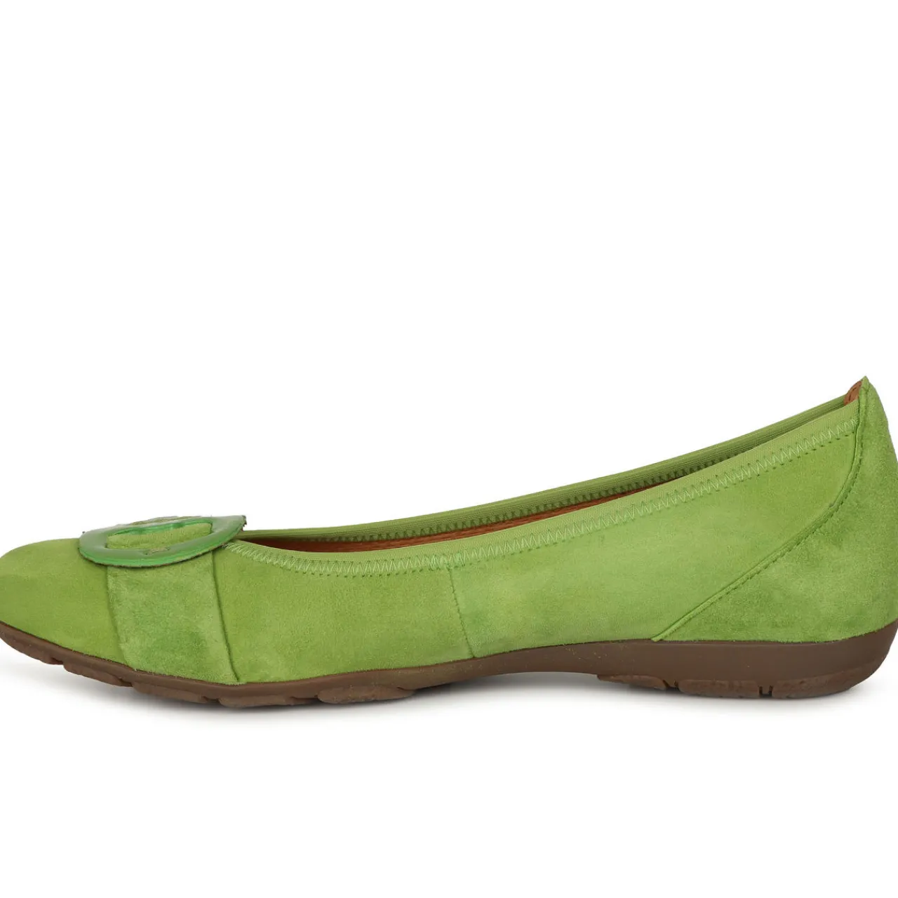 - Round toe, oversized buckle effect detail, tonal hardware, textured sole, slip on silhouette, suede finish
