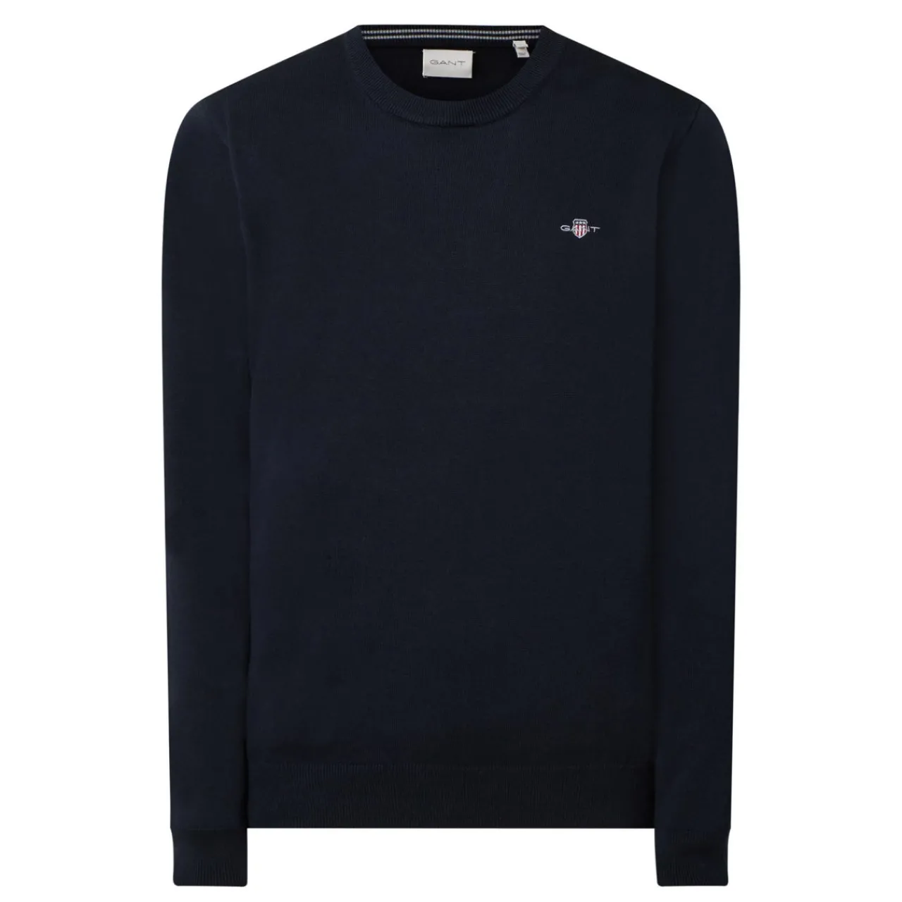 - Crew neckline, ribbed trims, fine knit structure, embroidered shield logo detail