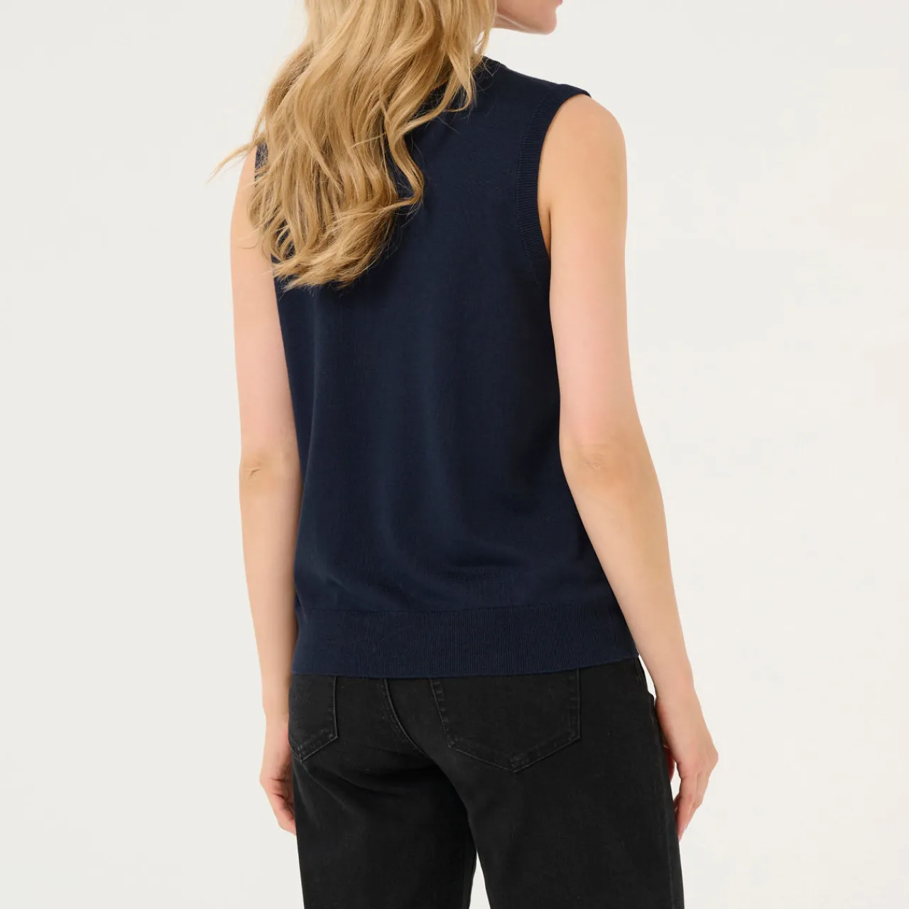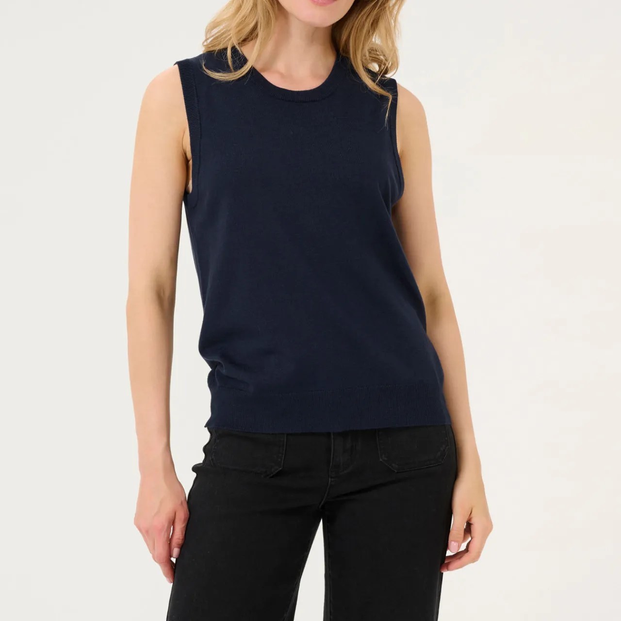 - Round neck, sleeveless design, straight hem, rib-knit trims, lightweight