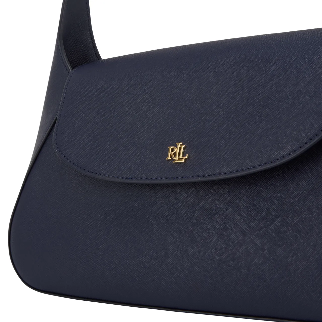 - Flap closure with magnetic fastening, shoulder strap, structured silhouette, monogram logo hardware, gold-tone finishes, textured design, tonal stitching