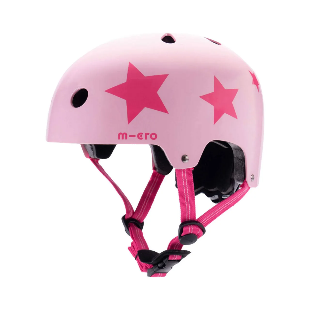- Solid ABS construction for impact protection, rear light for added safety, protective chin pad, size adjustable fit system for best fit, padding for comfort, star print, air vents, reflective logo