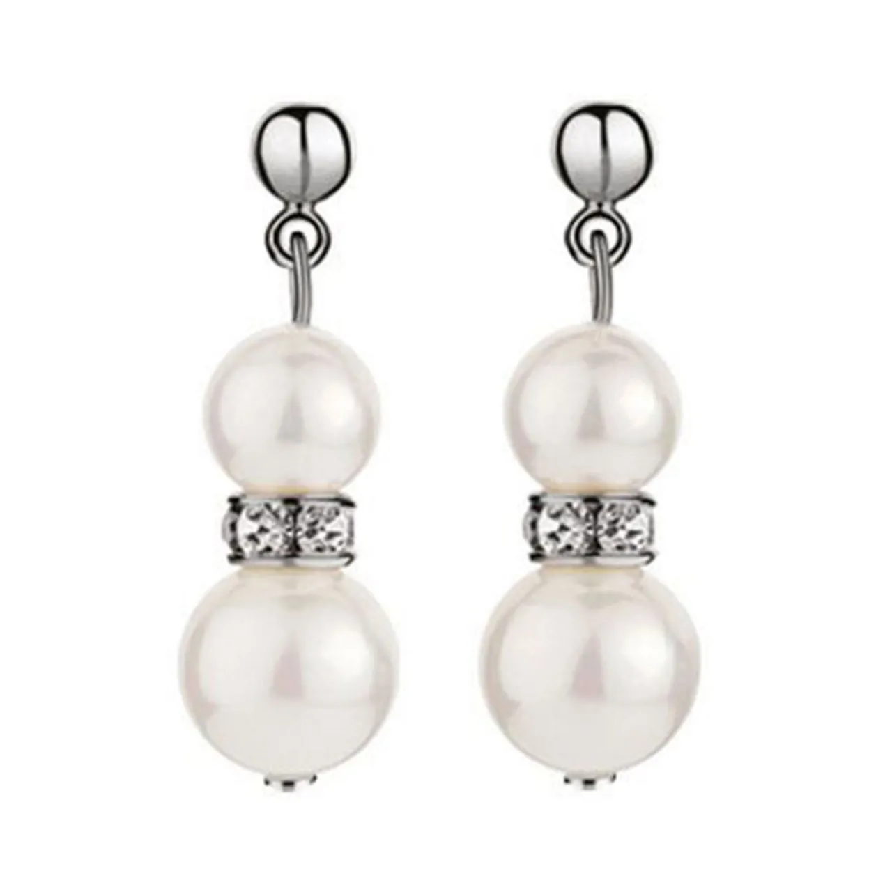 - Drop earrings, clear crystal stone settings, natural shell pearl beads, butterfly post fastenings, presented in a branded gift box