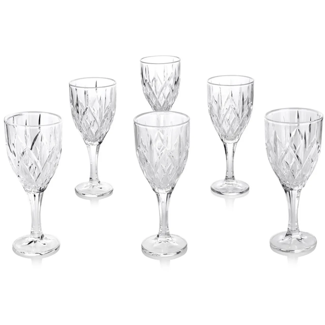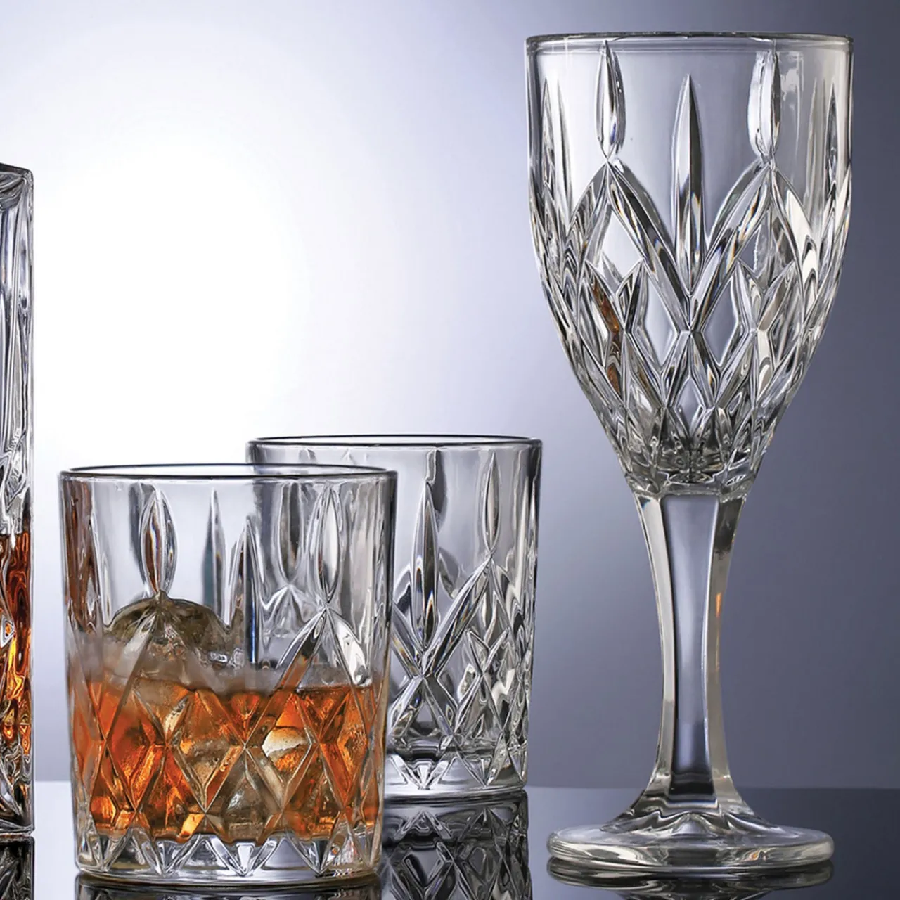 - Set of six, wine glasses, traditional cut glass design, presented in a gift box