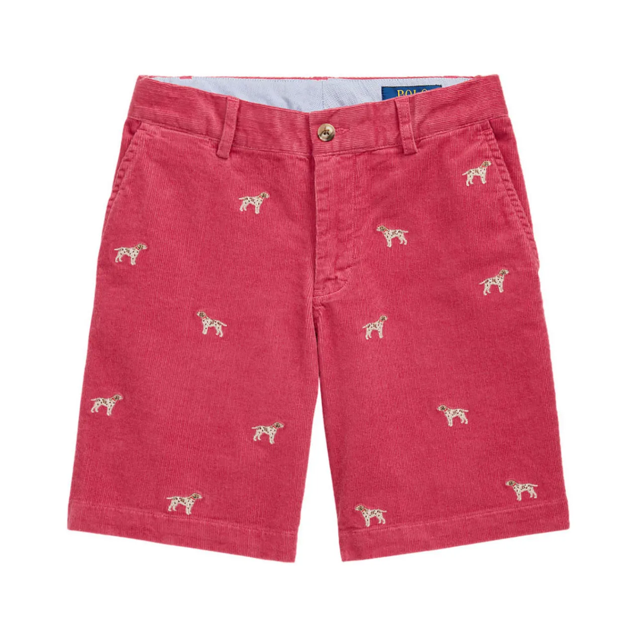 - Embroidered pony above the back right pocket, belt loops, zip fly with a buttoned closure, two front angled pockets, right hip coin pocket, two back buttoned pockets, dogs embroidered all over