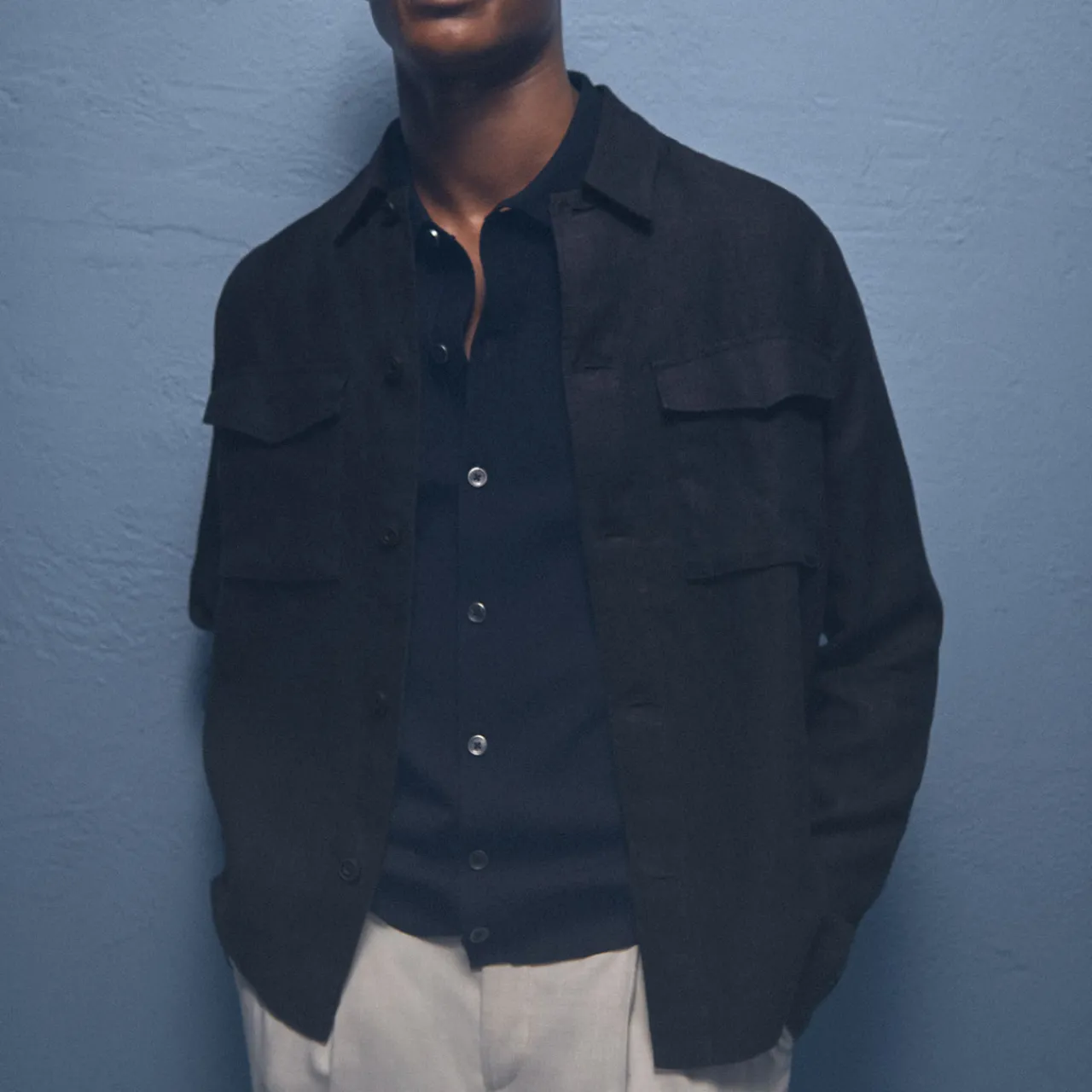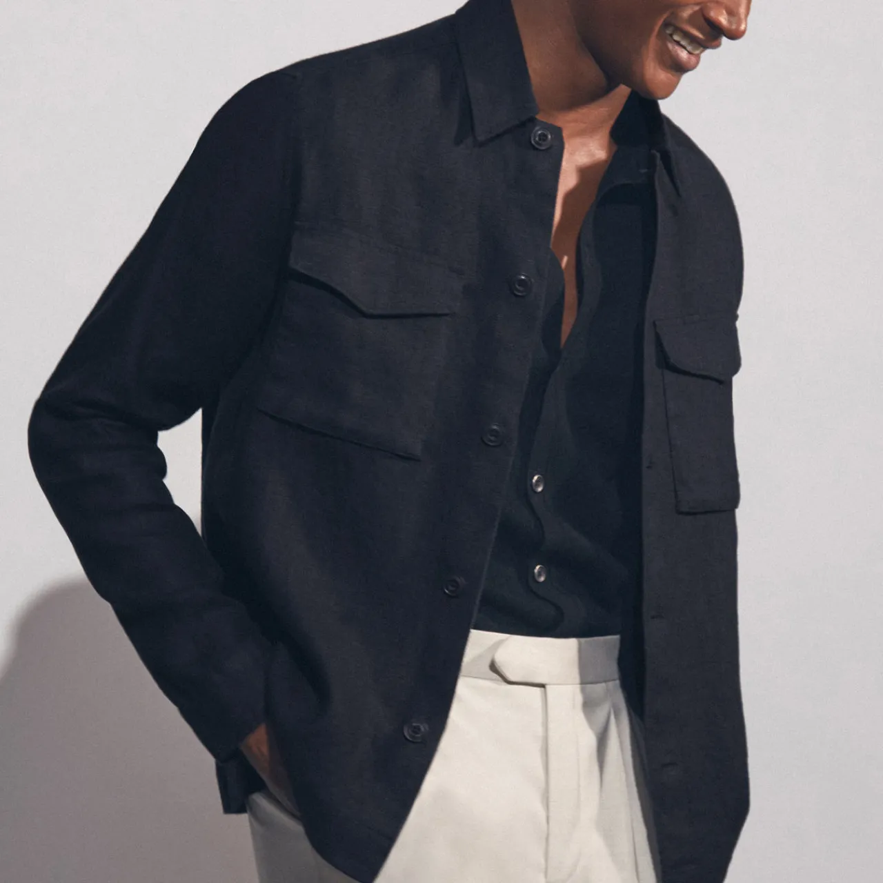 - Breathable, lightweight feel, two flap patch pockets, buttoned cuffs, French button placket