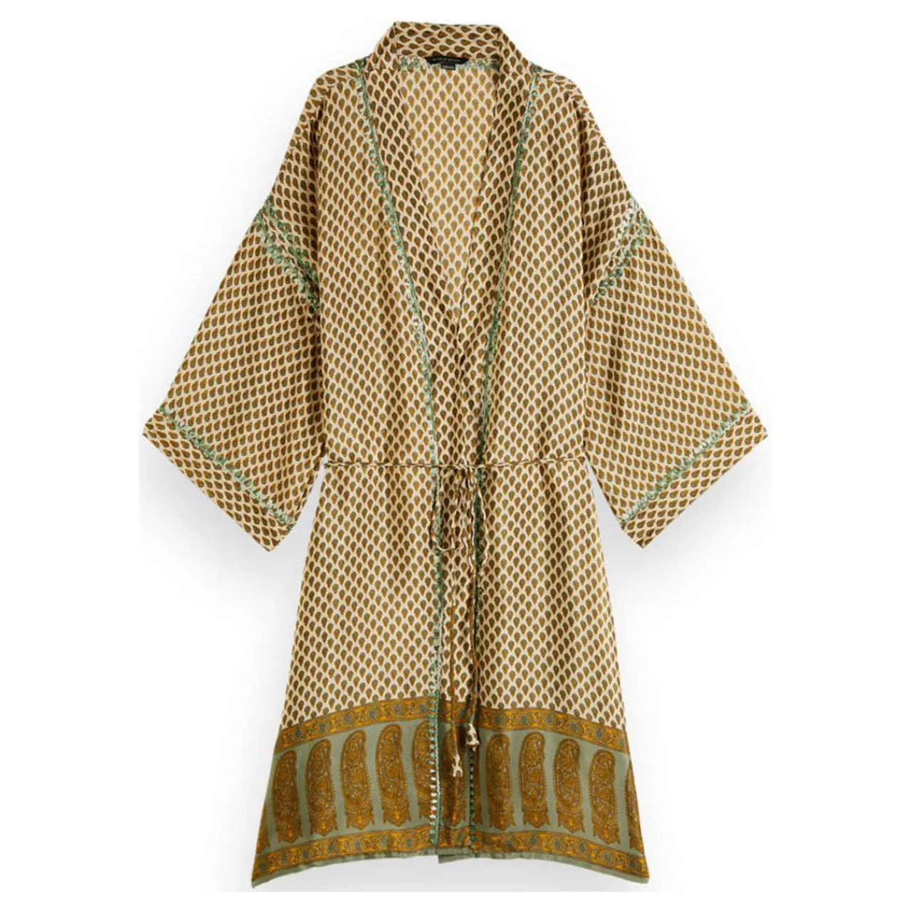 The Jaypur kimono is handcrafted with dropped shoulders and loose three-quarter length sleeves. Detailed with decorative hand embroidery. You can add more shape by cinching the robe around your waist with the matching detachable tie. The kimono can be a year-round staple for your wardrobe; wear it as a coverup on the beach or use it to add a funky detail to your winter look. One size, suitable for all sizes.