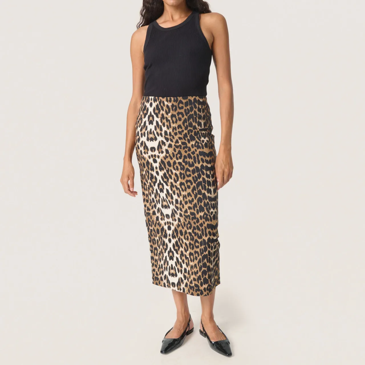 - Midi length, leopard print design, invisible zip fastening, pencil silhouette