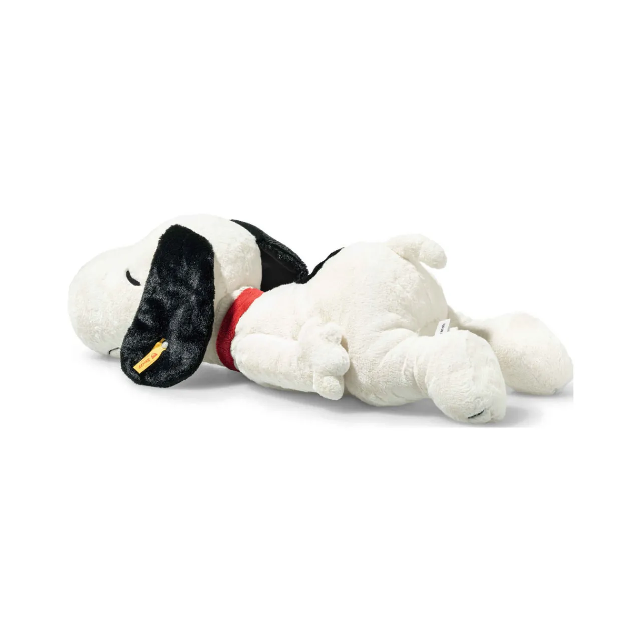 - Snoopy cuddly plush toy, embroidered features, stuffed design, laying down posture, weighted arms and legs to ensure Snoopy’s stability