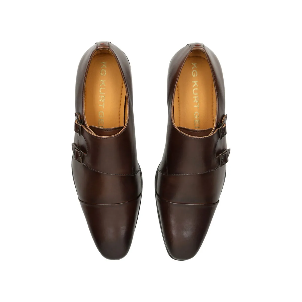 - Almond toe, foot strap with double buckle detail, low heel, smooth leather finish