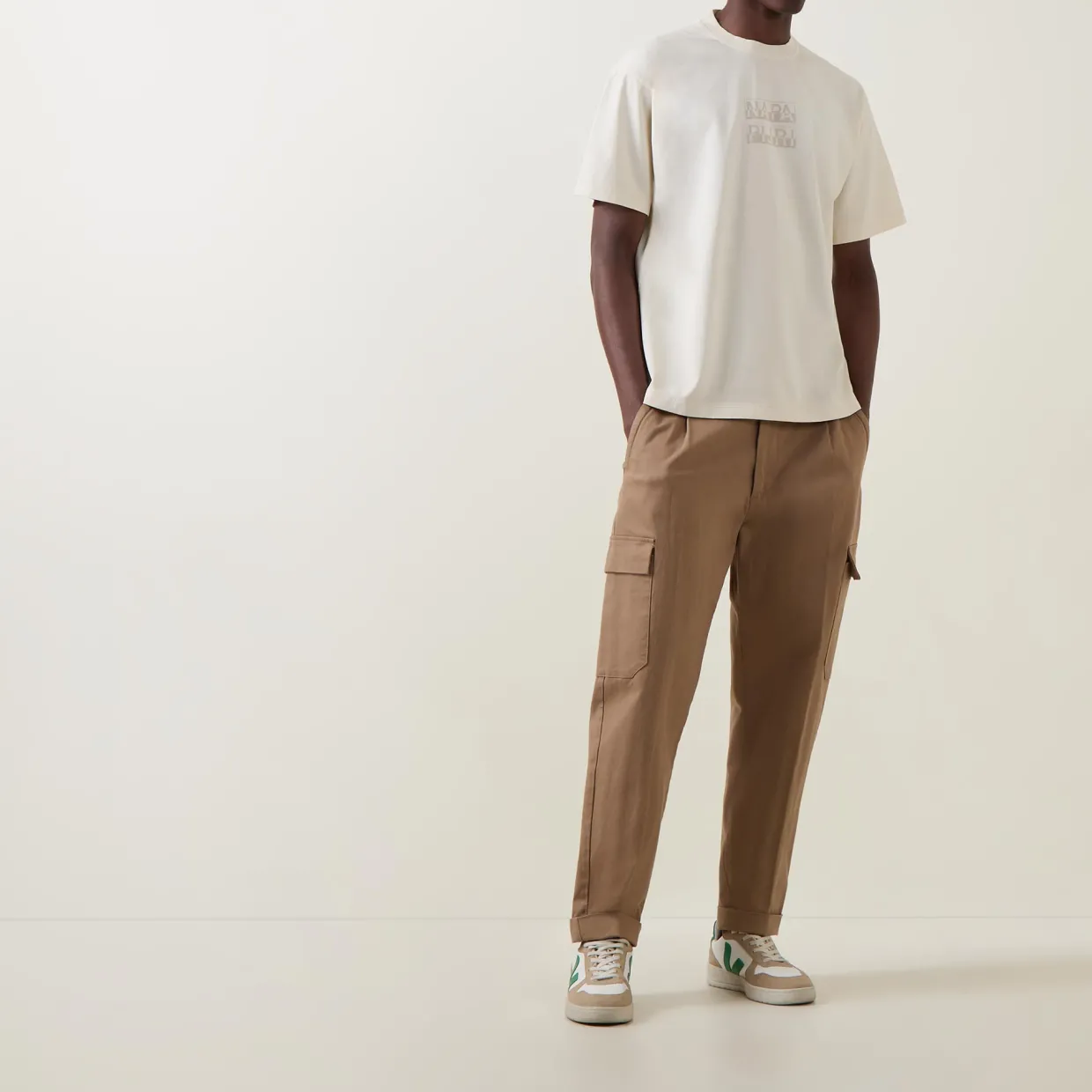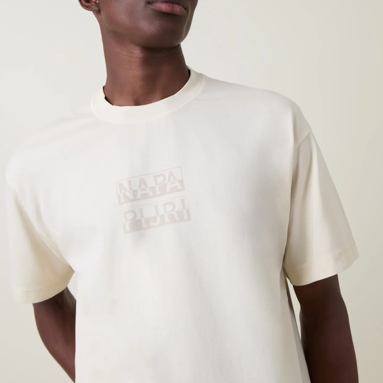 - Short sleeves, round neckline, dropped shoulders, logo branding on chest, tonal stitching, straight hemline, smooth fabric