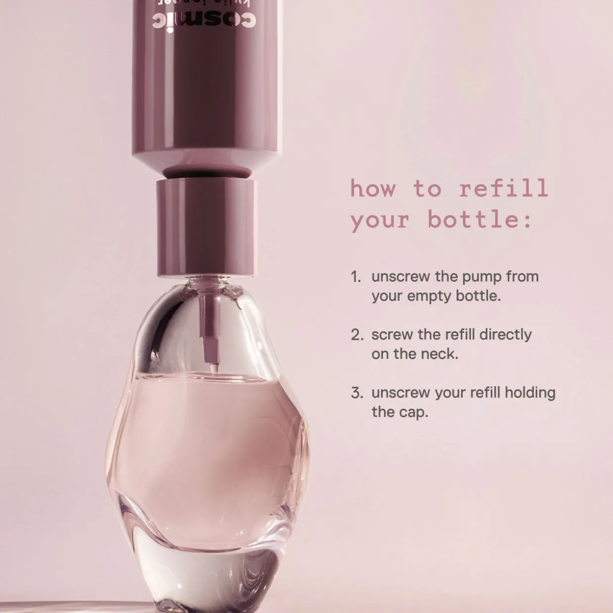 Cosmic Kylie Jenner is designed to resemble a piece of art from another world, the sculptural bottle formed to fit perfectly in the palm of your hand. Different from every angle, the unique shape represents the ever-changing nature of love, and the mirrored cap is present to reflect your image and remind you to show yourself love and grace.