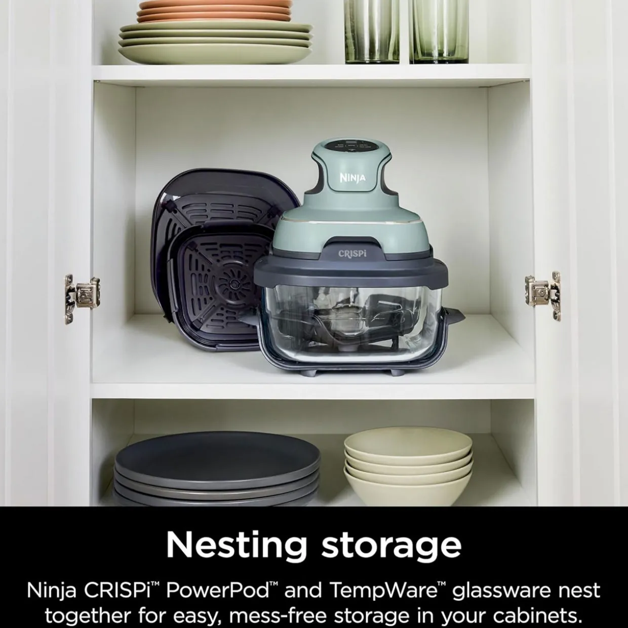- EASY STORAGE: Ninja’s Crispi PowerPod and TempWare glassware nests together for mess-free storage in your cabinets.