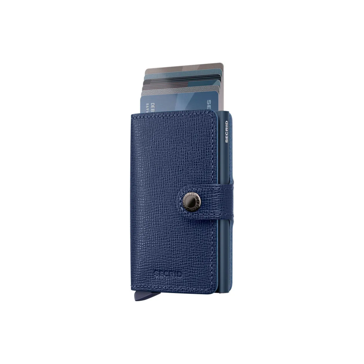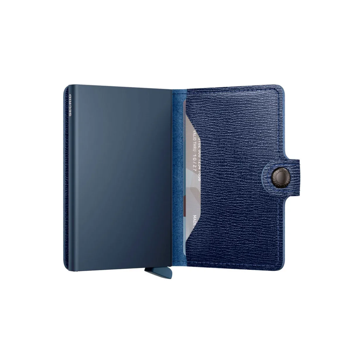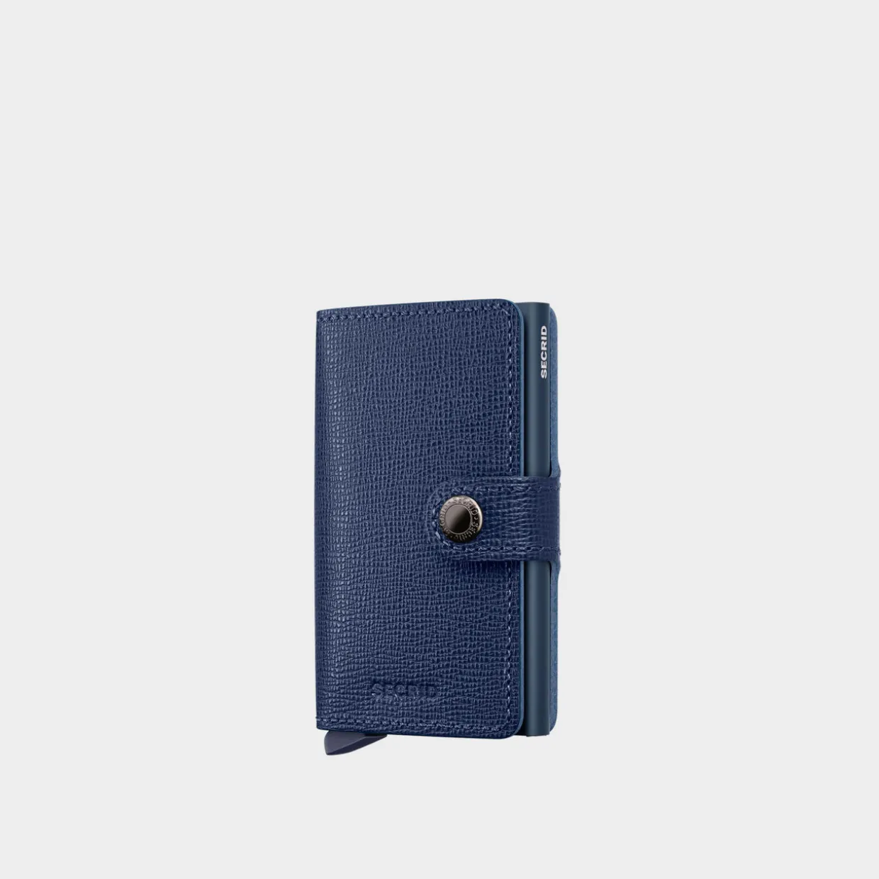 - Compact size, aluminium Cardprotector, slide mechanism, water-repellent finish, snap button fastening, brand logo detail, crisple leather finish