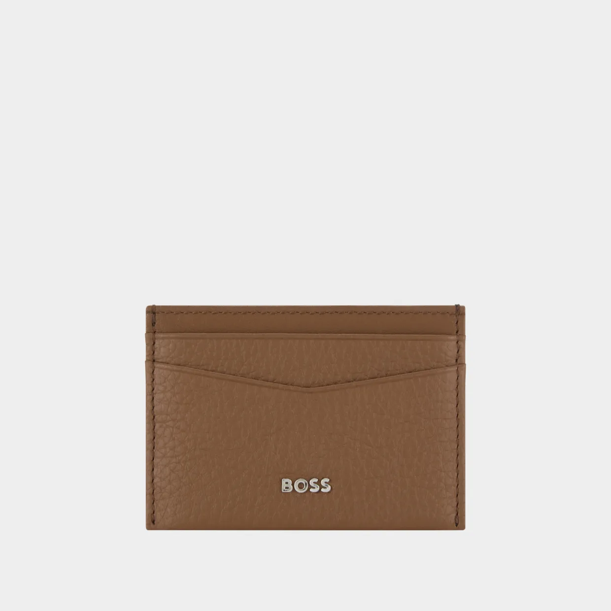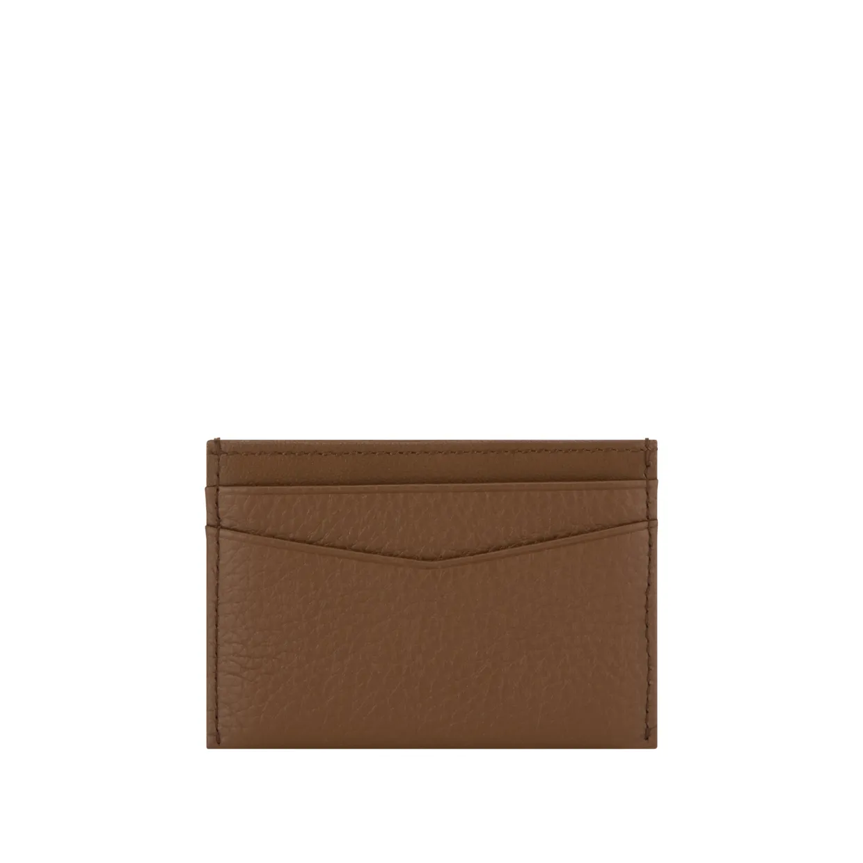 - Four card slots, front logo lettering, tonal stitching, grained leather finish