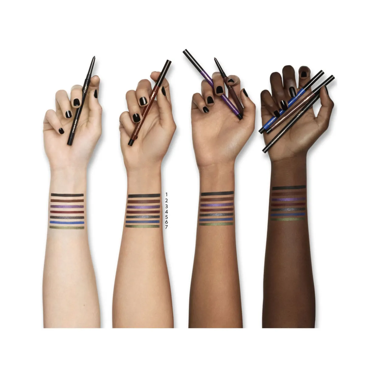 - Ingredients Shade 1: CI 77499 / IRON OXIDES • TRIMETHYLSILOXYSILICATE • SYNTHETIC WAX • HYDROGENATED POLYISOBUTENE • HYDROGENATED POLY(C6-14 OLEFIN) • HYDROGENATED POLYDECENE • MICA • SILICA SILYLATE • POLYBUTENE • CI 77266 / BLACK 2 • ETHYLENE/PROPYLENE COPOLYMER • COPERNICIA CERIFERA CERA / CARNAUBA WAX • CAPRYLIC/CAPRIC TRIGLYCERIDE • PENTAERYTHRITYL TETRA-DI-T-BUTYL HYDROXYHYDROCINNAMATE • PUNICA GRANATUM FRUIT EXTRACT Shade 2: TRIMETHYLSILOXYSILICATE • SYNTHETIC WAX • HYDROGENATED POLYISOBUTENE • CI 77499 / IRON OXIDES • HYDROGENATED POLY(C6-14 OLEFIN) • HYDROGENATED POLYDECENE • CI 77491 / IRON OXIDES • MICA • SILICA SILYLATE • CI 77492 / IRON OXIDES • POLYBUTENE • ETHYLENE/PROPYLENE COPOLYMER • COPERNICIA CERIFERA CERA / CARNAUBA WAX • CAPRYLIC/CAPRIC TRIGLYCERIDE • PENTAERYTHRITYL TETRA-DI-T-BUTYL HYDROXYHYDROCINNAMATE • PUNICA GRANATUM FRUIT EXTRACT Shade 4: MICA • TRIMETHYLSILOXYSILICATE • SYNTHETIC WAX • HYDROGENATED POLYISOBUTENE • HYDROGENATED POLY(C6-14 OLEFIN) • HYDROGENATED POLYDECENE • CI 75470 / CARMINE • CI 77499 / IRON OXIDES • SILICA SILYLATE • POLYBUTENE • CI 77491 / IRON OXIDES • CI 77492 / IRON OXIDES • ETHYLENE/PROPYLENE COPOLYMER • COPERNICIA CERIFERA CERA / CARNAUBA WAX • CI 77510 / FERRIC AMMONIUM FERROCYANIDE • CAPRYLIC/CAPRIC TRIGLYCERIDE • PENTAERYTHRITYL TETRA-DI-T-BUTYL HYDROXYHYDROCINNAMATE • PUNICA GRANATUM FRUIT EXTRACT Shade 5: TRIMETHYLSILOXYSILICATE • SYNTHETIC WAX • HYDROGENATED POLYISOBUTENE • CI 77499 / IRON OXIDES • HYDROGENATED POLY(C6-14 OLEFIN) • HYDROGENATED POLYDECENE • MICA • SYNTHETIC FLUORPHLOGOPITE • SILICA SILYLATE • POLYBUTENE • CI 77891 / TITANIUM DIOXIDE • ETHYLENE/PROPYLENE COPOLYMER • COPERNICIA CERIFERA CERA / CARNAUBA WAX • CAPRYLIC/CAPRIC TRIGLYCERIDE • TIN OXIDE • CI 77510 / FERRIC FERROCYANIDE • PENTAERYTHRITYL TETRA-DI-T-BUTYL HYDROXYHYDROCINNAMATE • PUNICA GRANATUM FRUIT EXTRACT Shade 6: TRIMETHYLSILOXYSILICATE • SYNTHETIC WAX • CI 77007 / ULTRAMARINES • HYDROGENATED POLYISOBUTENE • HYDROGENATED POLY(C6-14 OLEFIN) • HYDROGENATED POLYDECENE • MICA • SILICA • SILICA SILYLATE • POLYBUTENE • CI 77742 / MANGANESE VIOLET • CI 77891 / TITANIUM DIOXIDE • KAOLIN • ETHYLENE/PROPYLENE COPOLYMER • CI 77510 / FERRIC AMMONIUM FERROCYANIDE • COPERNICIA CERIFERA CERA / CARNAUBA WAX • CAPRYLIC/CAPRIC TRIGLYCERIDE • ALUMINA • CI 75470 / CARMINE • PENTAERYTHRITYL TETRA-DI-T-BUTYL HYDROXYHYDROCINNAMATE • PUNICA GRANATUM FRUIT EXTRACT Shade 7: TRIMETHYLSILOXYSILICATE • SYNTHETIC WAX • MICA • HYDROGENATED POLYISOBUTENE • HYDROGENATED POLY(C6-14 OLEFIN) • HYDROGENATED POLYDECENE • CI 77891 / TITANIUM DIOXIDE • SILICA SILYLATE • CI 77499 / IRON OXIDES • POLYBUTENE • CI 77492 / IRON OXIDES • CI 77491 / IRON OXIDES • ETHYLENE/PROPYLENE COPOLYMER • CI 77510 / FERRIC FERROCYANIDE • COPERNICIA CERIFERA CERA / CARNAUBA WAX • CAPRYLIC/CAPRIC TRIGLYCERIDE • PENTAERYTHRITYL TETRA-DI-T-BUTYL HYDROXYHYDROCINNAMATE • PUNICA GRANATUM FRUIT EXTRACT