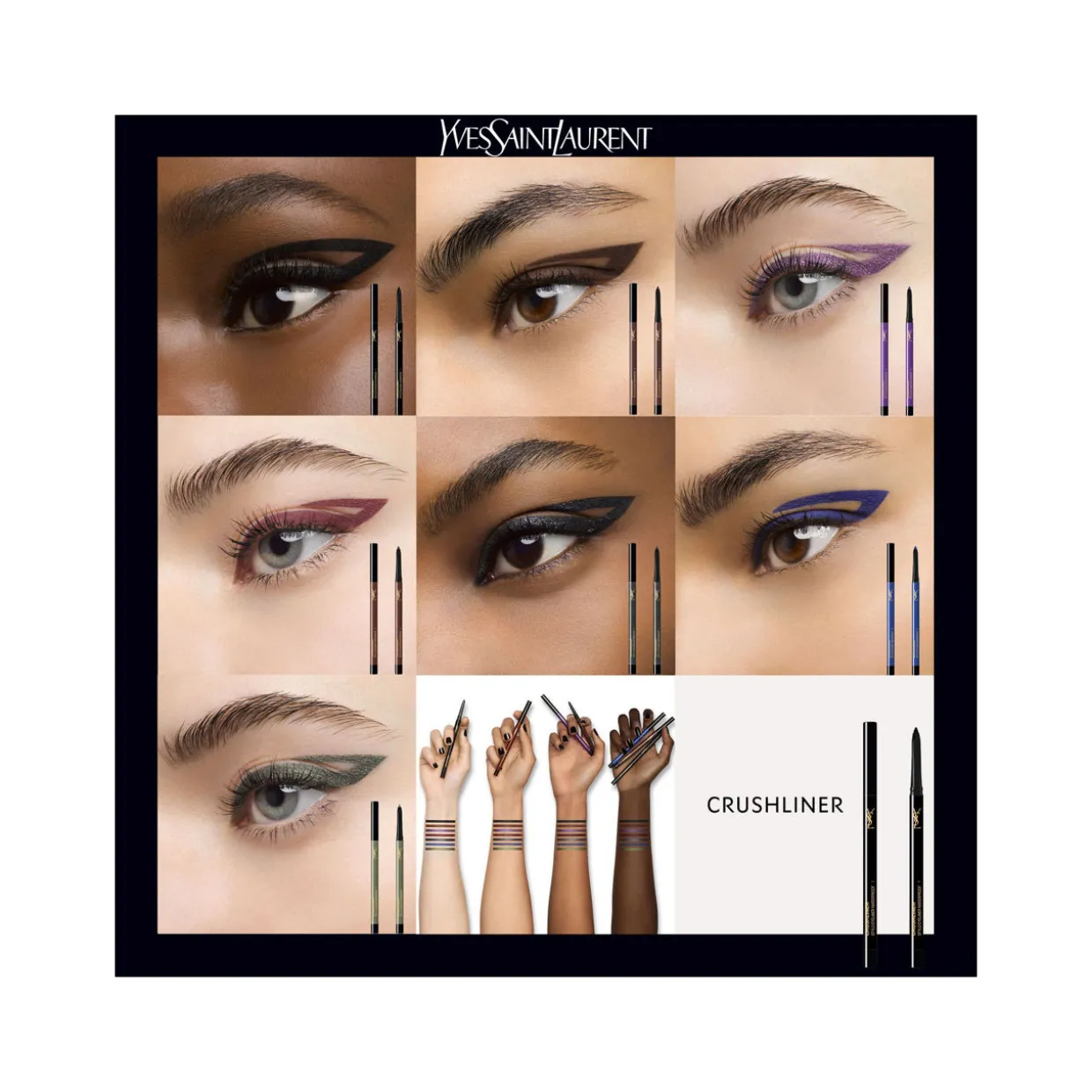 Intensify any eye look with Crushliner for an addictive,creamy liner that lasts for up to 24hrs. Design your look with ease thanks tothe super-blendable formula which allows you to build your look from a precisewinged eye to bold graphic lines or a smoked-out look. In 6 highly pigmentedshades from a classic black, bold cobalt blue and a rich burgundy, wear aloneor pair a few shades together for a clash of colour. Enriched with naturalpomegranate extract from the YSL Beauty Ourika Community Gardens in the AtlasMountains of Morocco. Our gel formula is completely smudge-resistant,waterproof and transfer-resistant for an eyeliner that lasts as long as you,without fading or smudging.