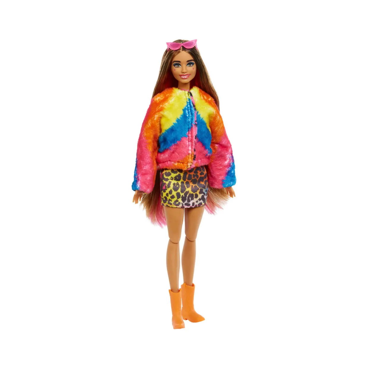 - One Barbie doll, posable, one surprise outfit, one reveal costume, hair reacts with hot and cold, pet inside