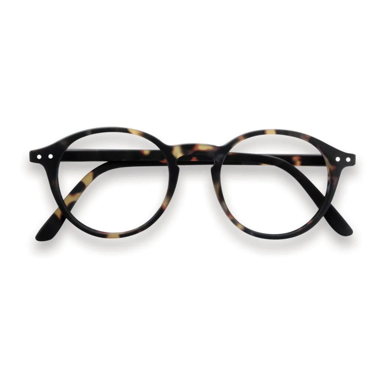- Magnifying reading glasses for presbyopia, tortoiseshell effect, round frame, unisex design, flex hinges, rubber texture to the arm, storage pouch.