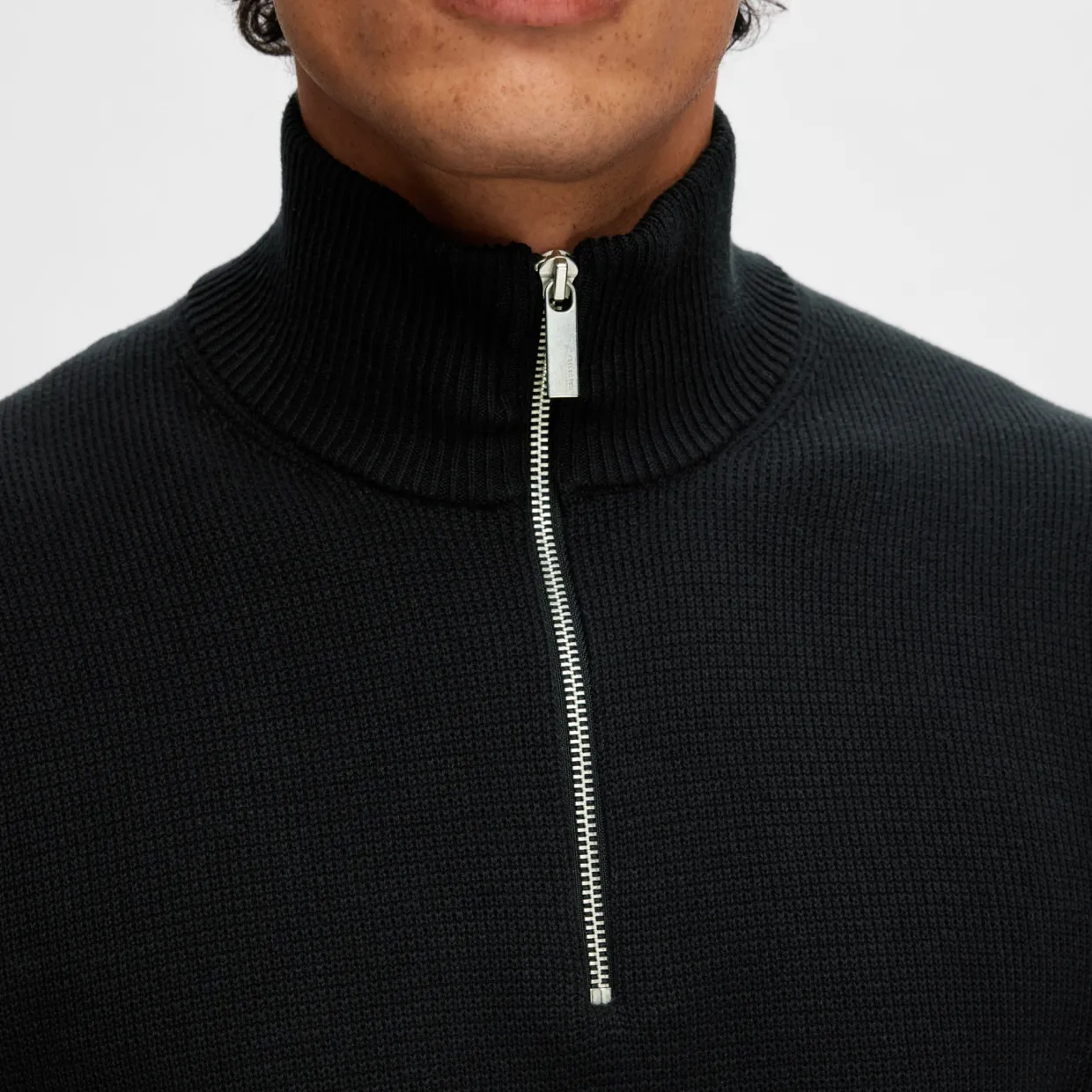 - High neck, long sleeves, ribbed cuffs, half zip fastening, regular fit