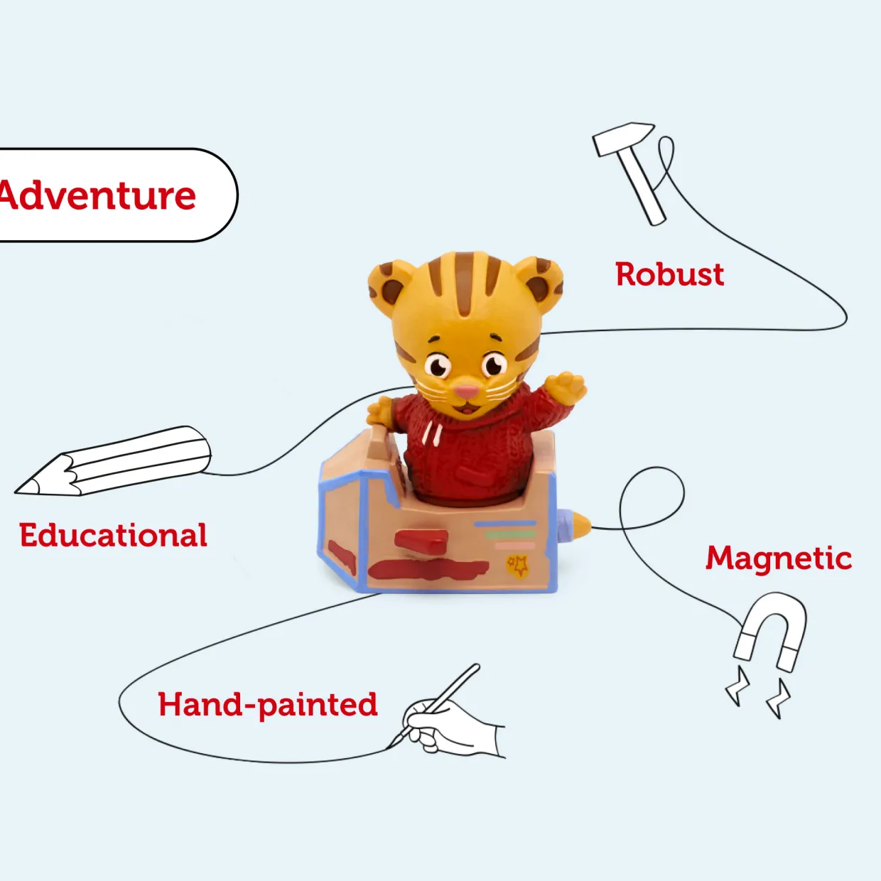 - Daniel Tiger’s Neighbourhood stories and songs, 29 minutes running time, magnetic, hand-painted, robust, educational