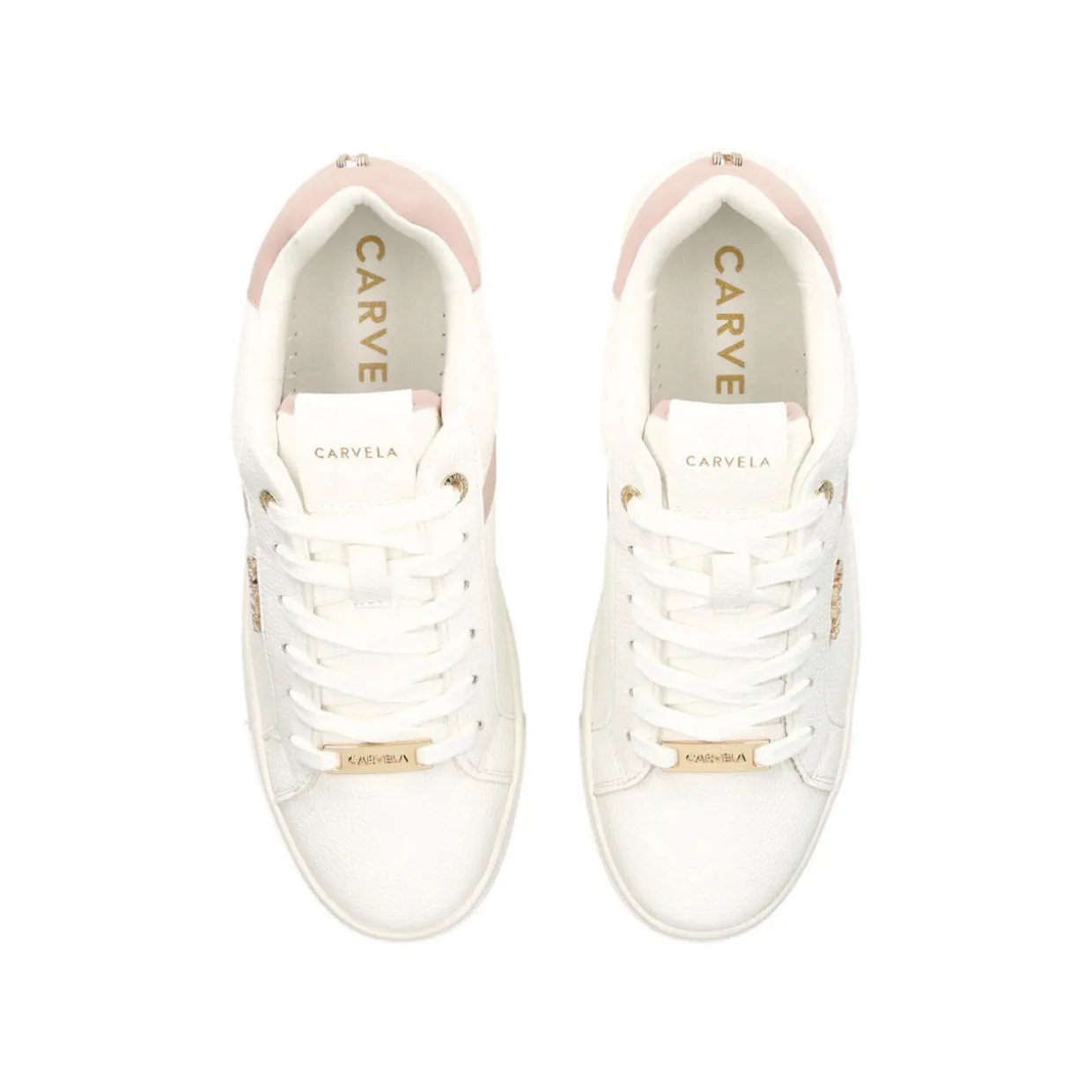 - Low top, textured upper, contrast stripe and heel tab, lace-up fastening, brand lettering, branded tab, gold-tone hardware, Icon C stud