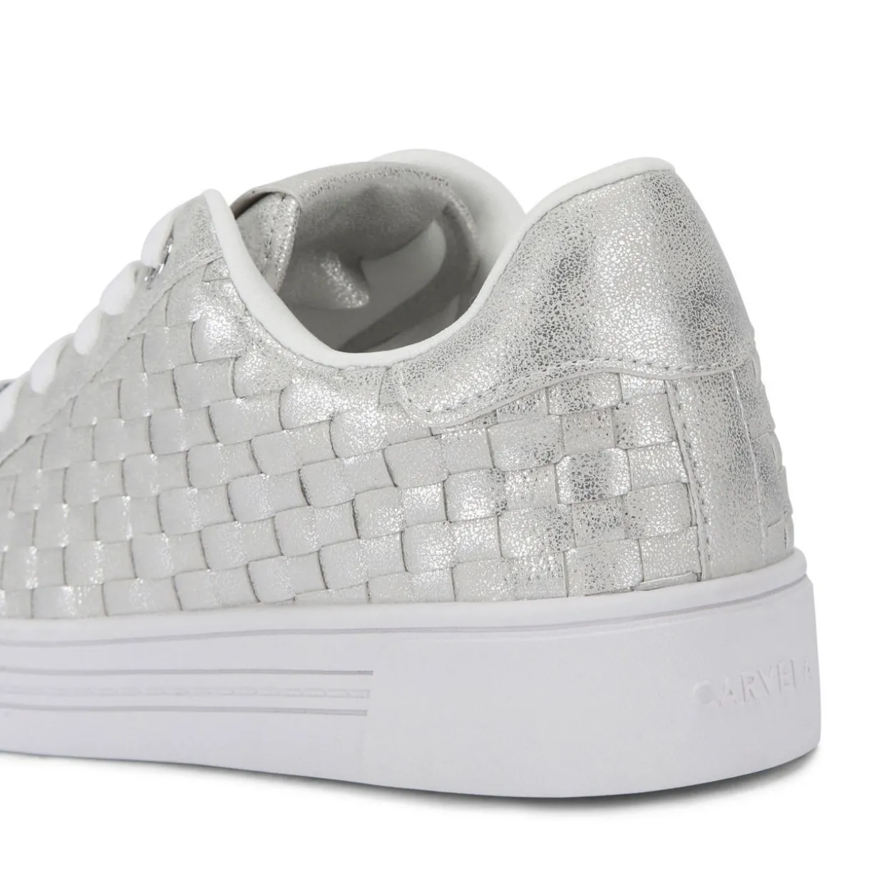 - Round toe, woven upper, lace-up fastening, silver-tone hardware, embossed foil logo on tongue
